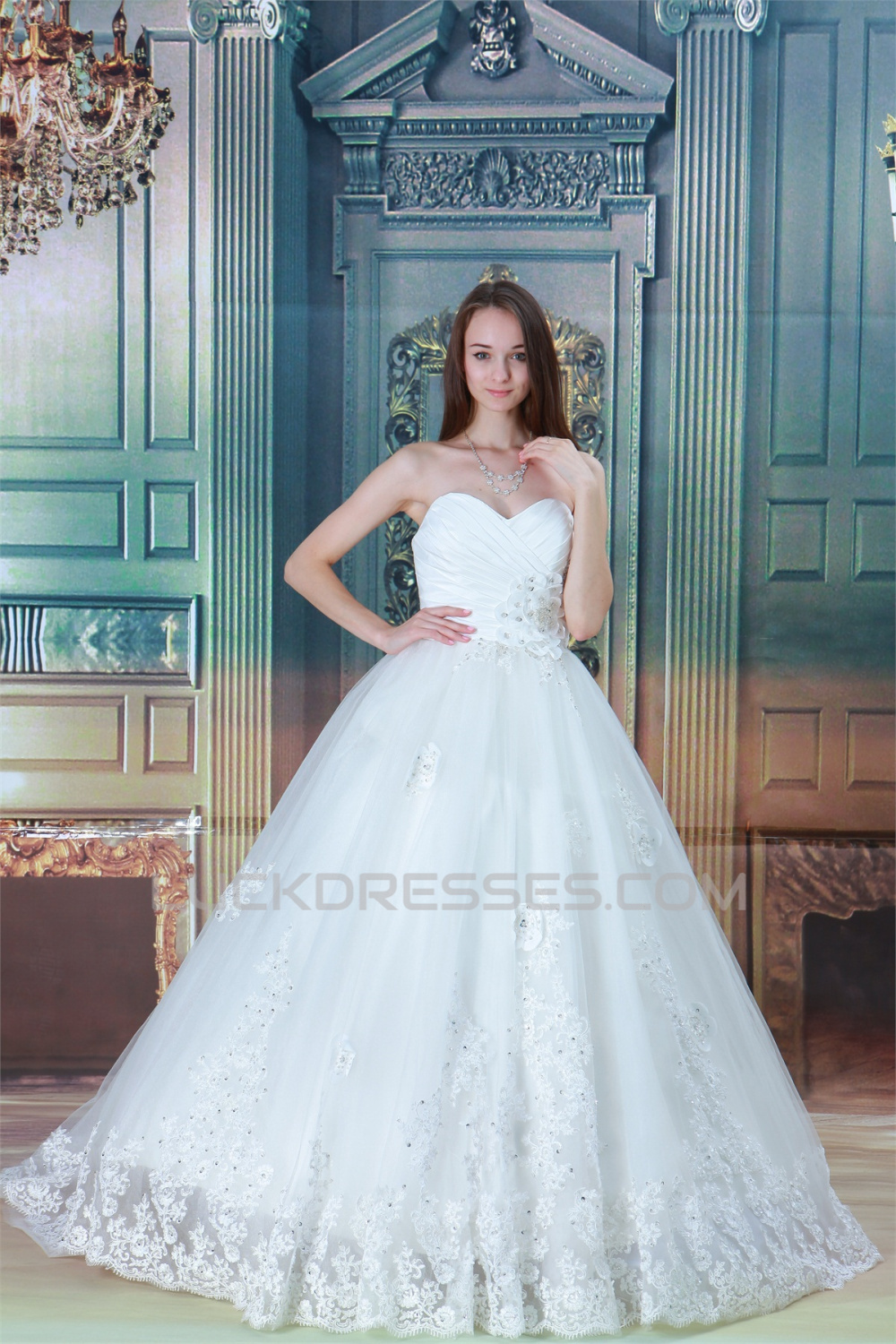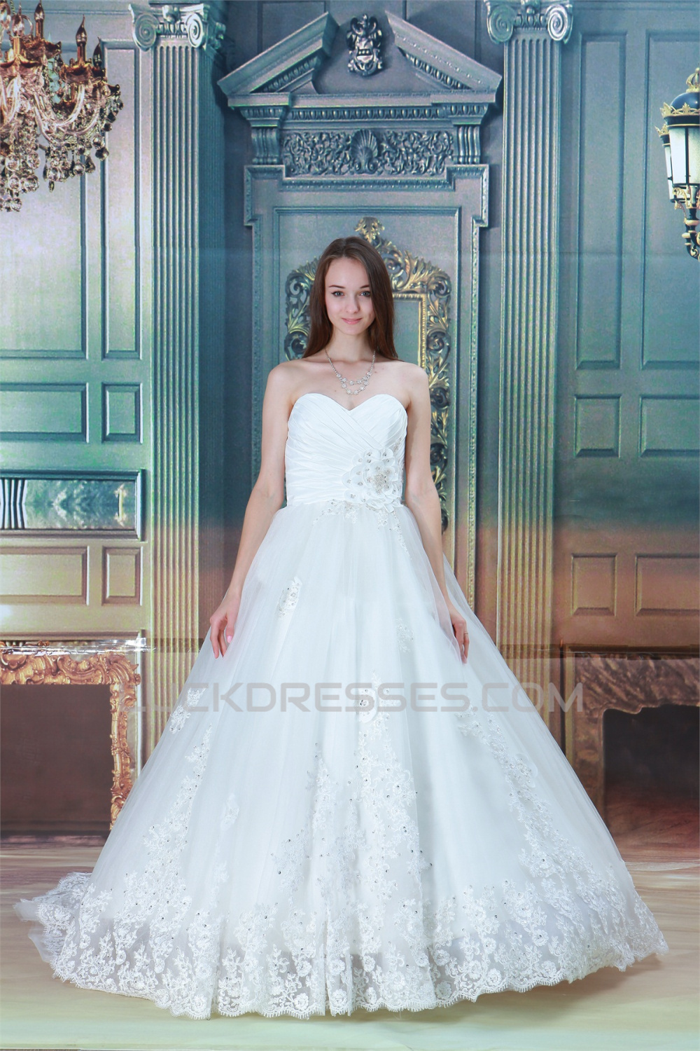 Ball Gown Sleeveless Sweetheart Satin Taffeta Fine Netting Wedding Dresses 2030610
