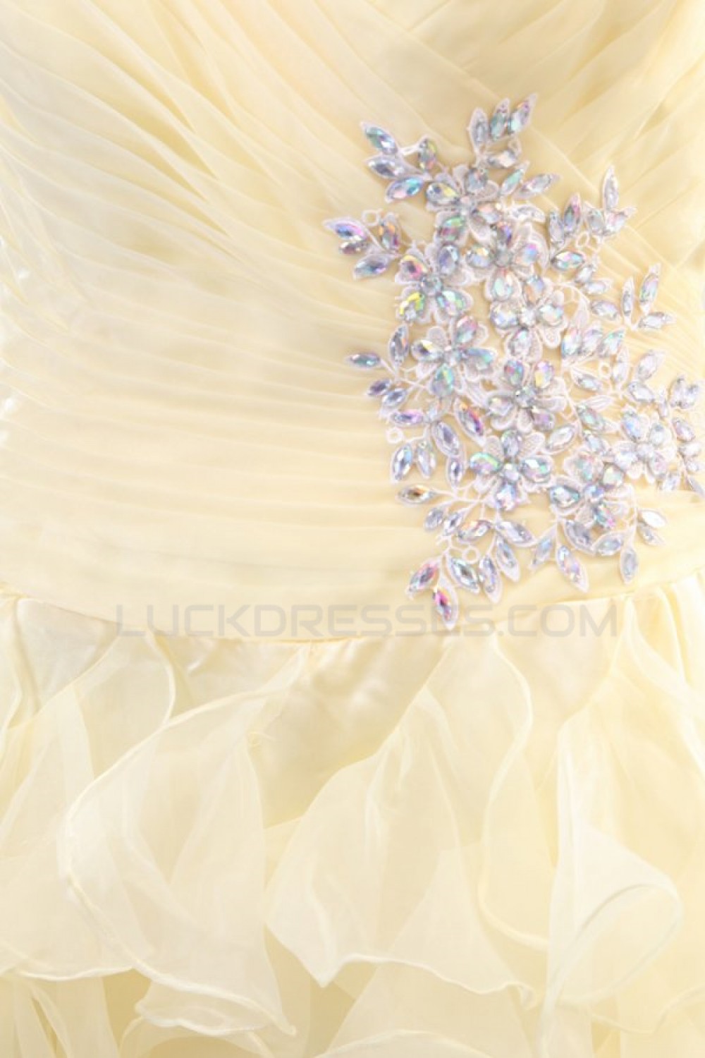-60% Ball Gown Spaghetti Strap Beaded Yellow Prom Evening Formal Party Dresses ED010135