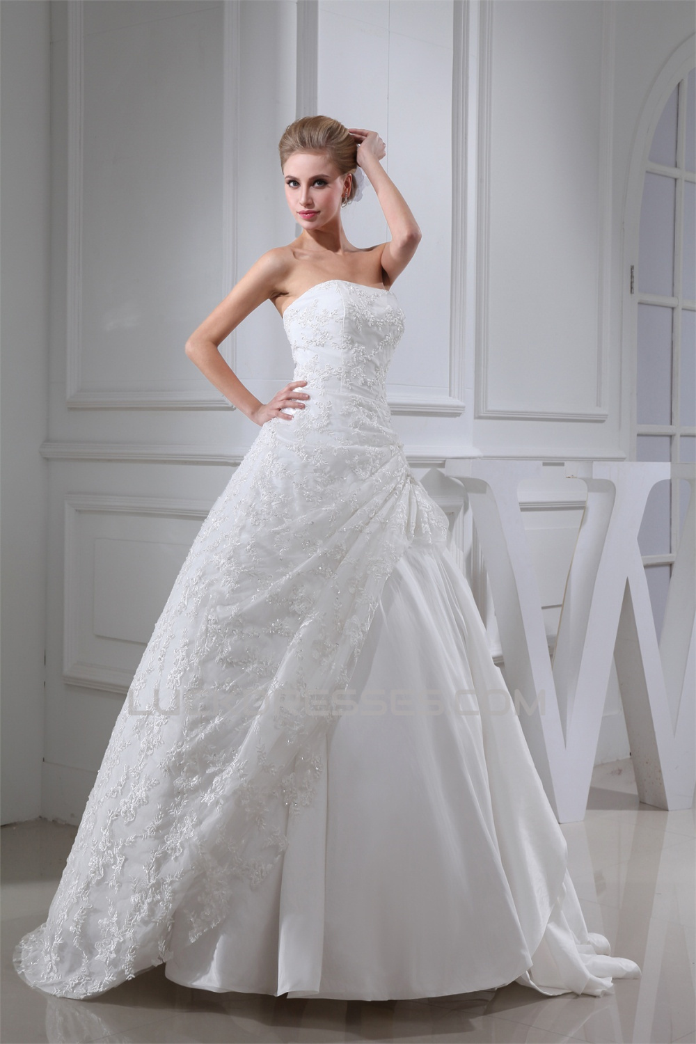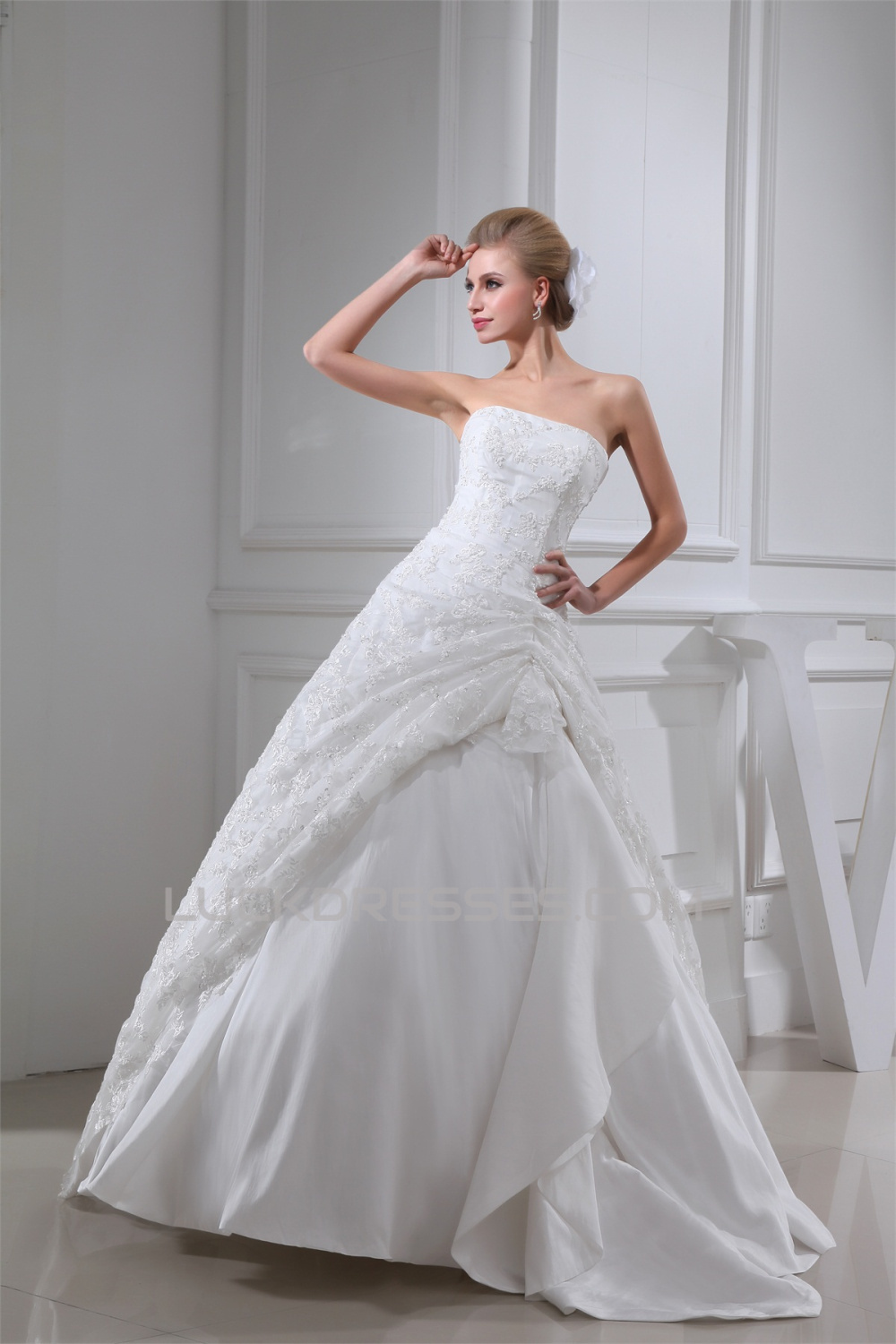 Ball Gown Strapless Floor-Length Lace Wedding Dresses 2030117