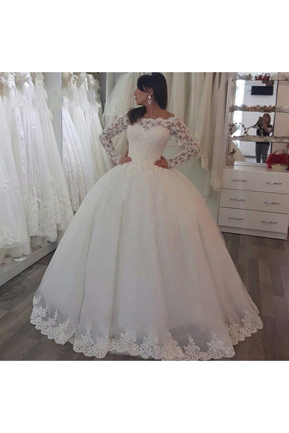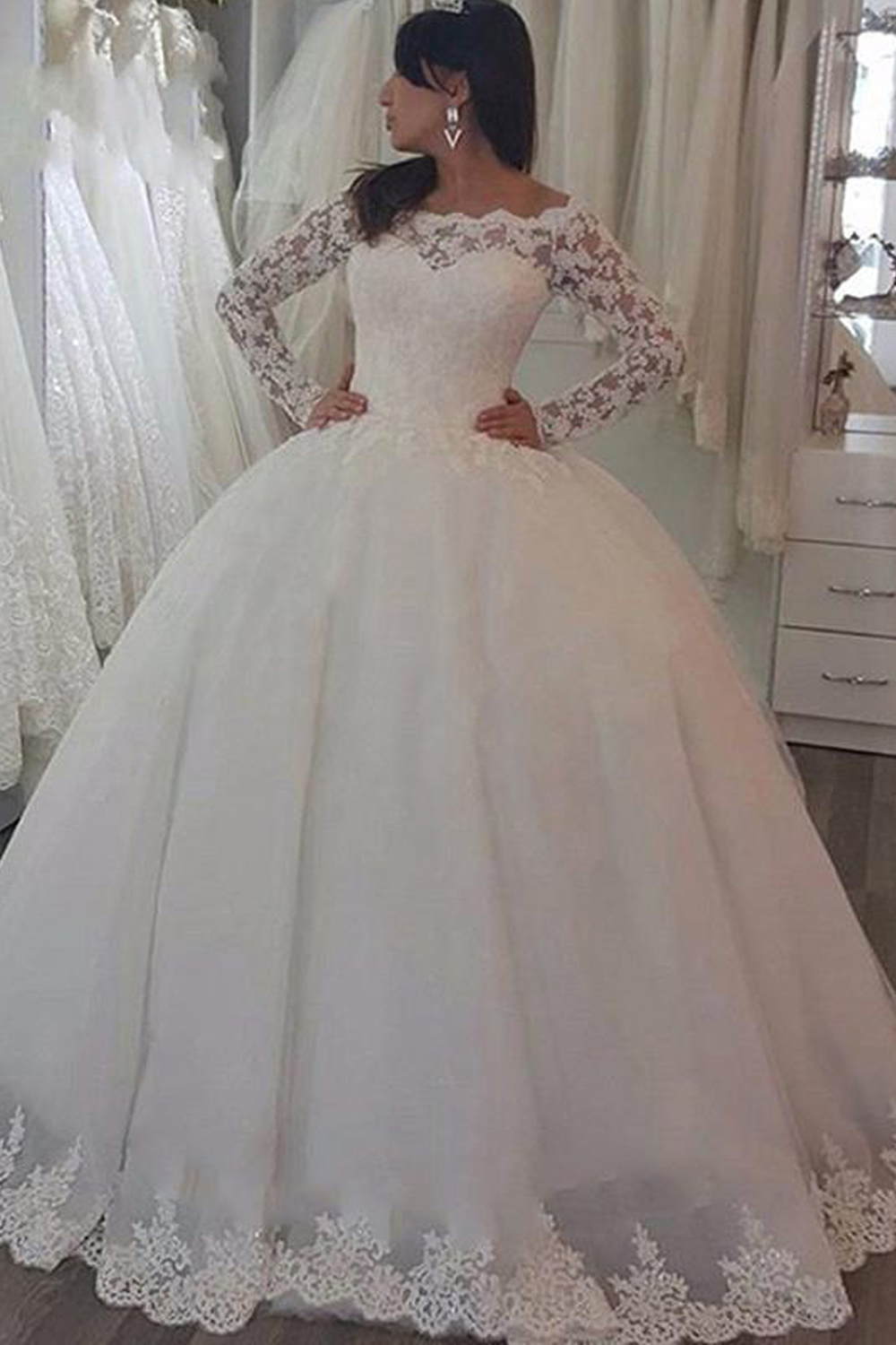 Ball Gowns Lace Long Sleeves Wedding Dresses Bridal Gowns 903378