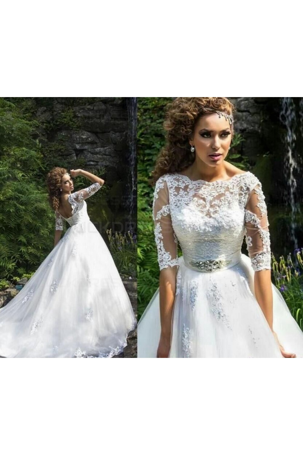Bateau Neckline Half Sleeves Lace Wedding Dresses Bridal Gowns 3030303