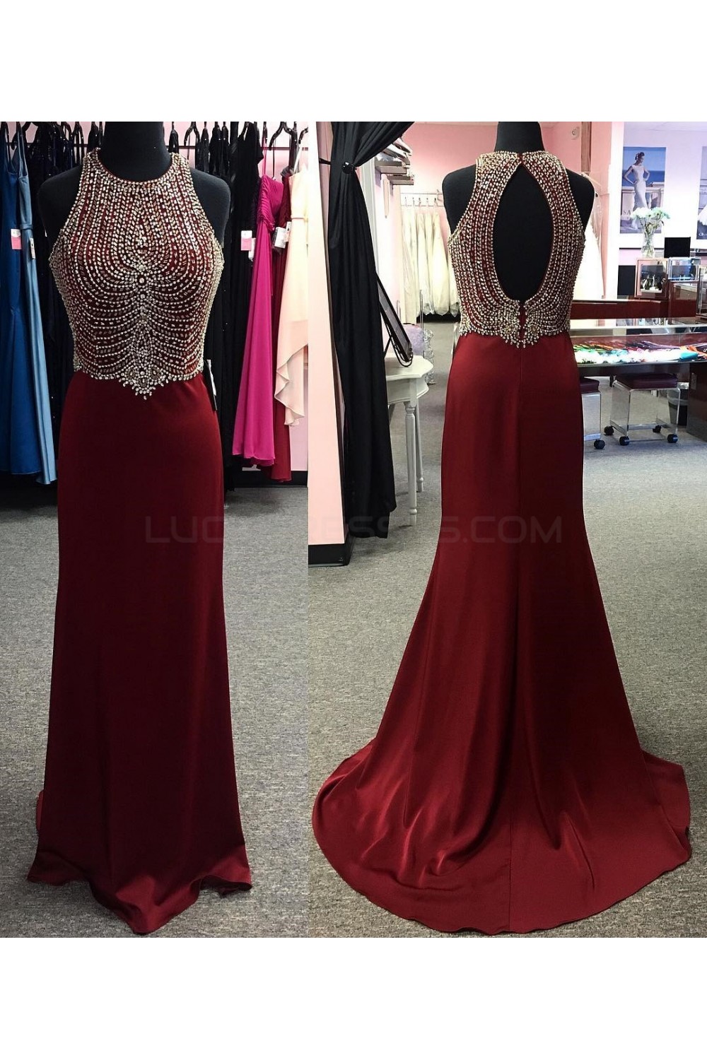 Beaded Burgundy Long Prom Formal Evening Party Dresses 3021261