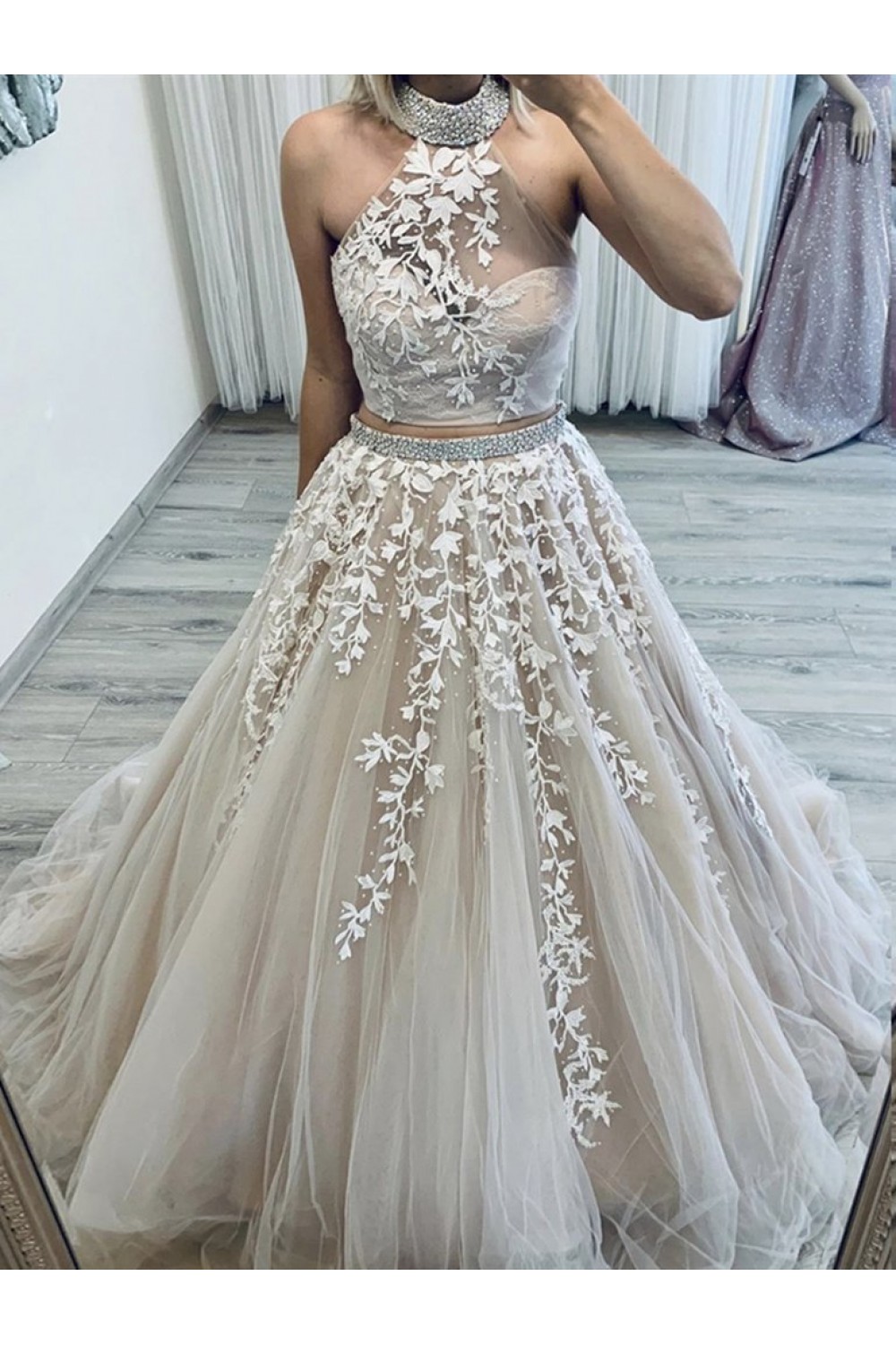 Beaded Lace Two Pieces Long Wedding Dresses Bridal Gowns 903421