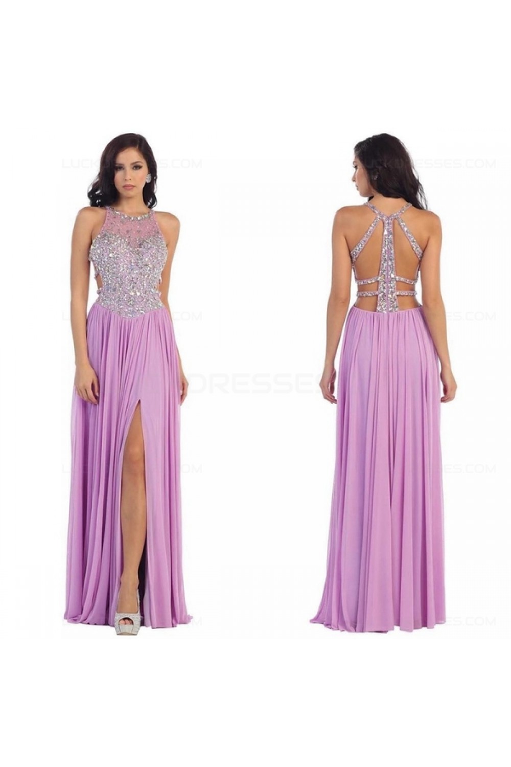 Beaded Lilac Chiffon Long Prom Evening Formal Dresses 3020093