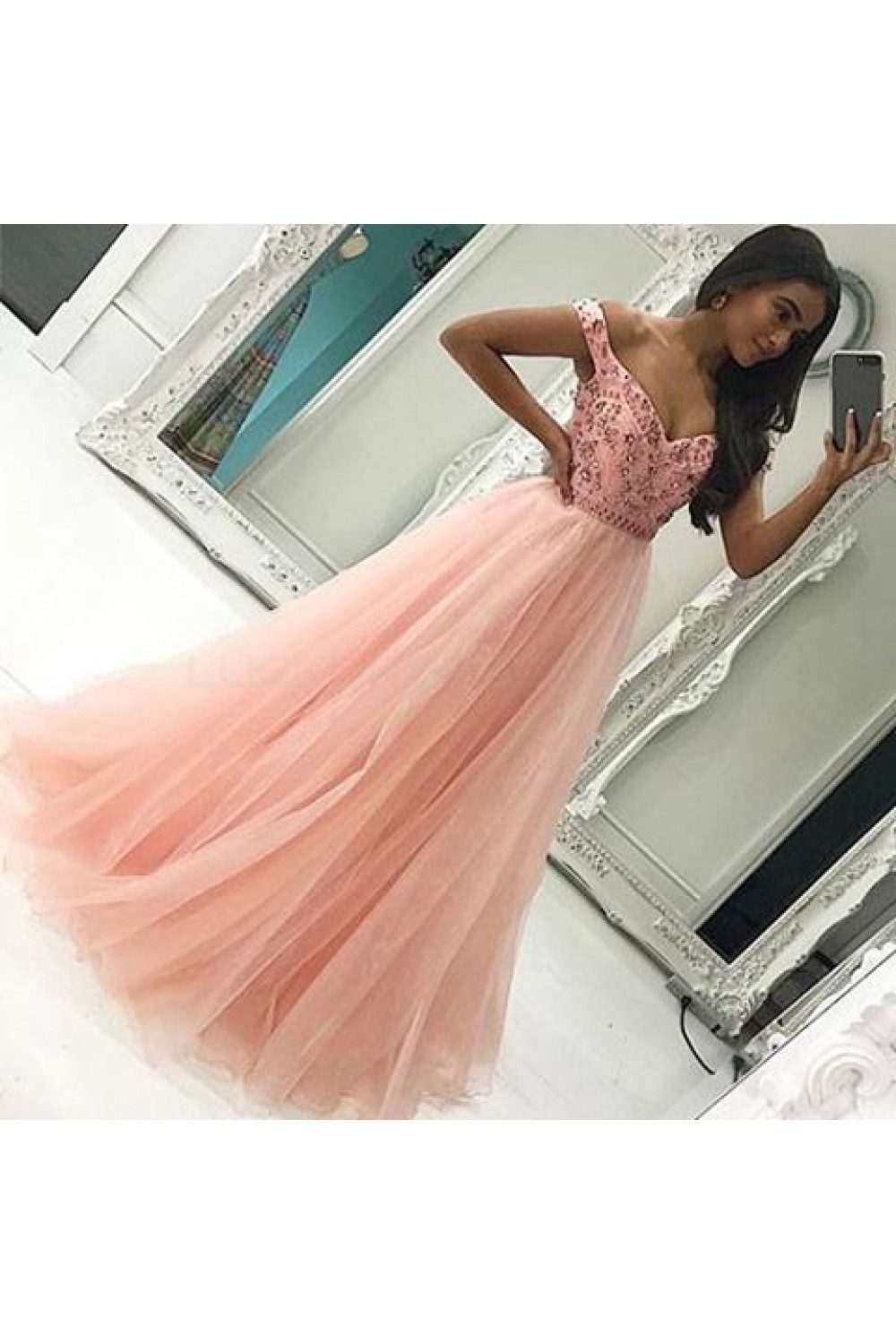 Beaded Long Pink Off-the-Shoulder Prom Formal Evening Party Dresses 3020859