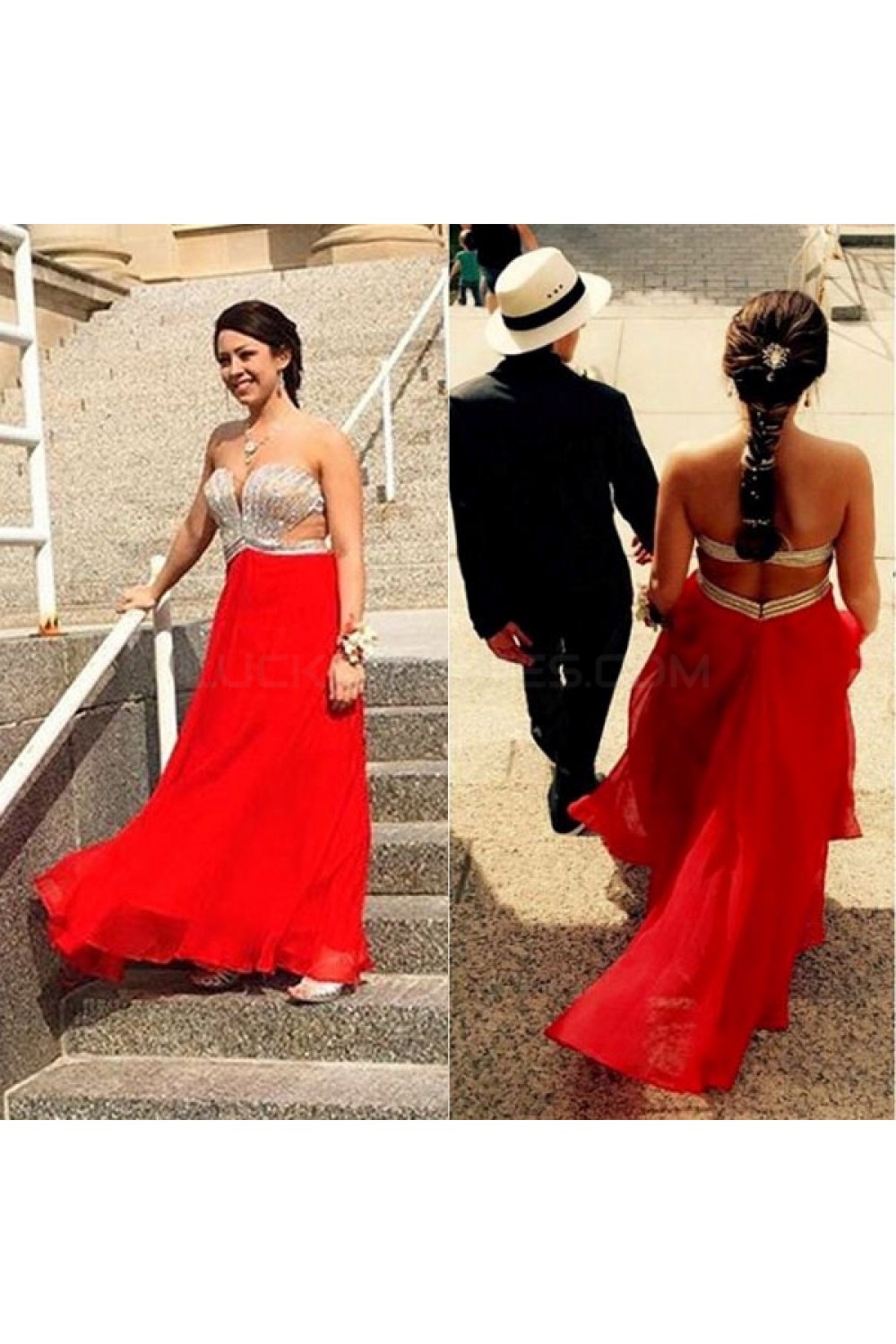 Beaded Long Red Chiffon Prom Formal Evening Party Dresses 3020919