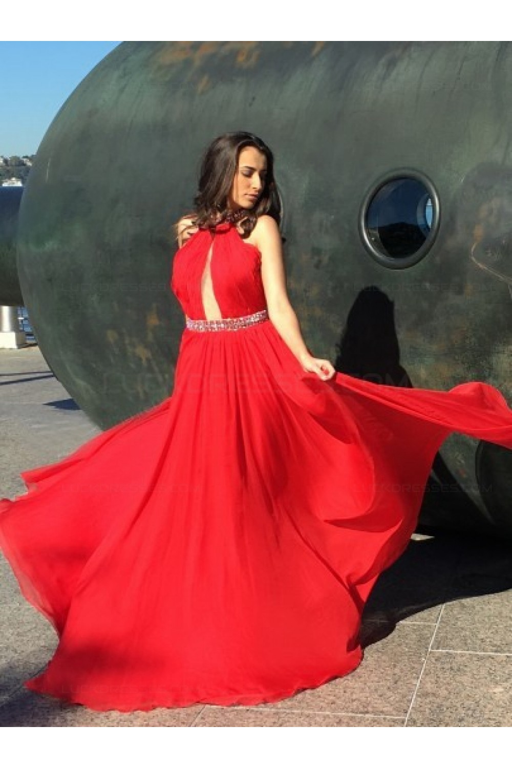Beaded Red Long Chiffon Prom Dresses Evening Gowns 3020212