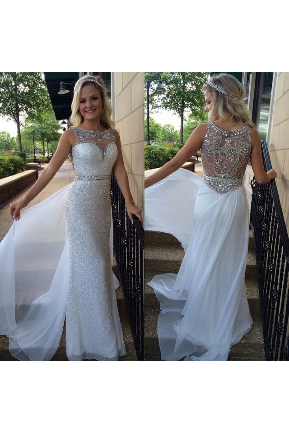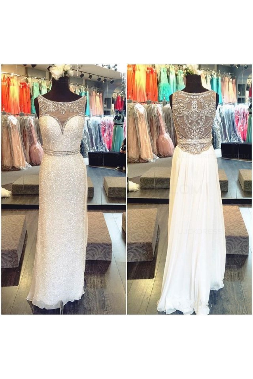 Beaded Sequins Long White Prom Evening Formal Dresses 3020138