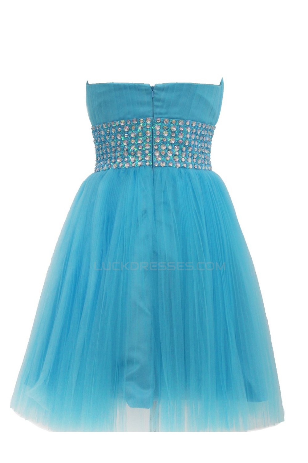Beaded Short Blue Tulle Prom Evening Formal Party Dresses ED010442
