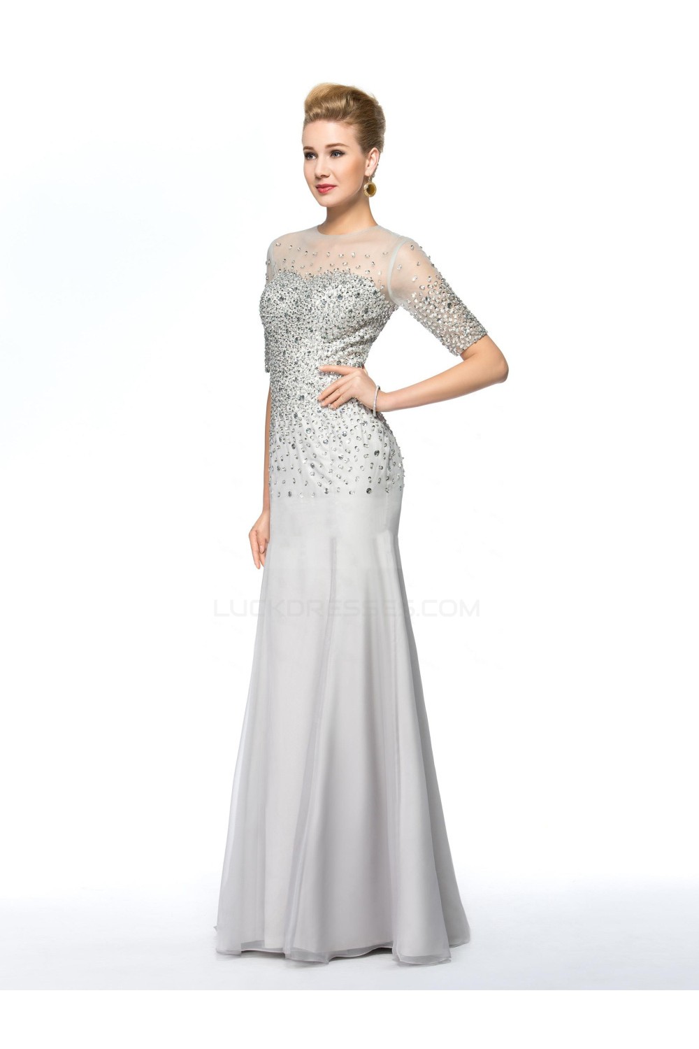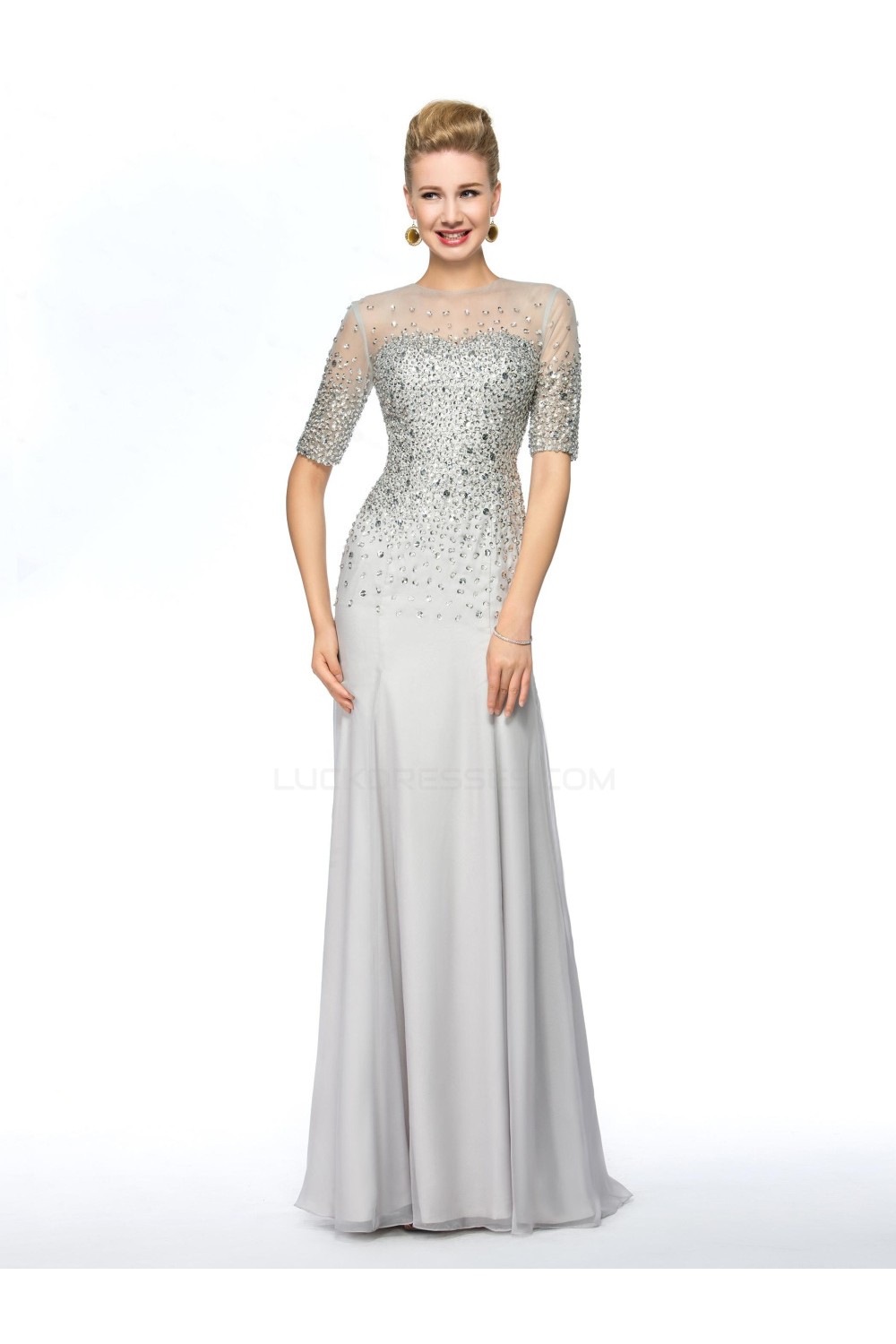 Beaded Short Sleeve Jewel Long Chiffon Mother of the Bride Dresses M010075