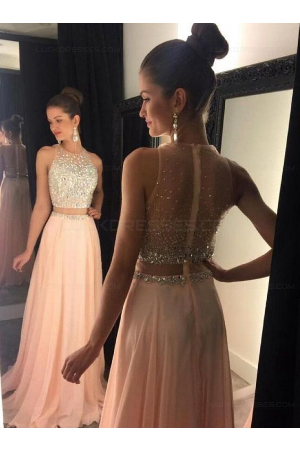 Beaded Two Pieces See Through Long Prom Evening Formal Dresses 3020115