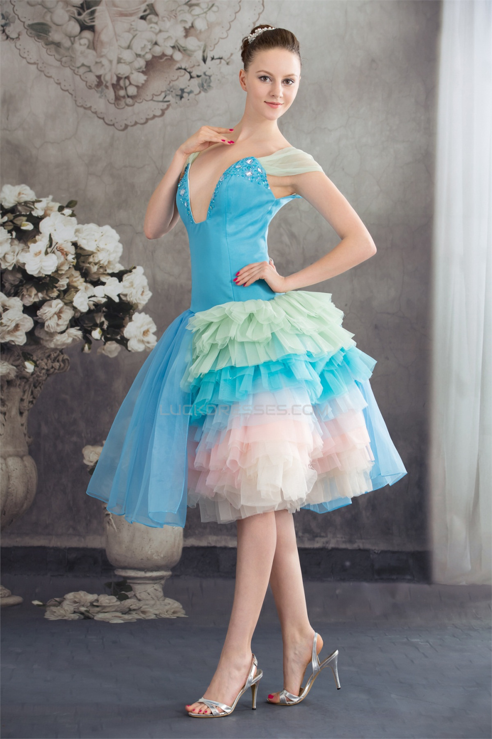 -60% Beading Satin Organza V-Neck A-Line Tea Length Prom/Formal Evening Dresses 02021047
