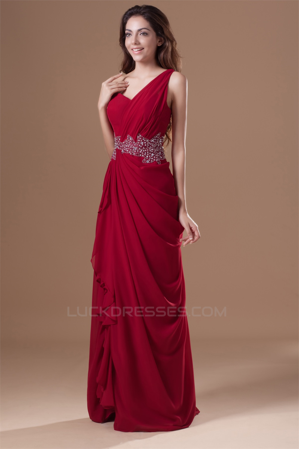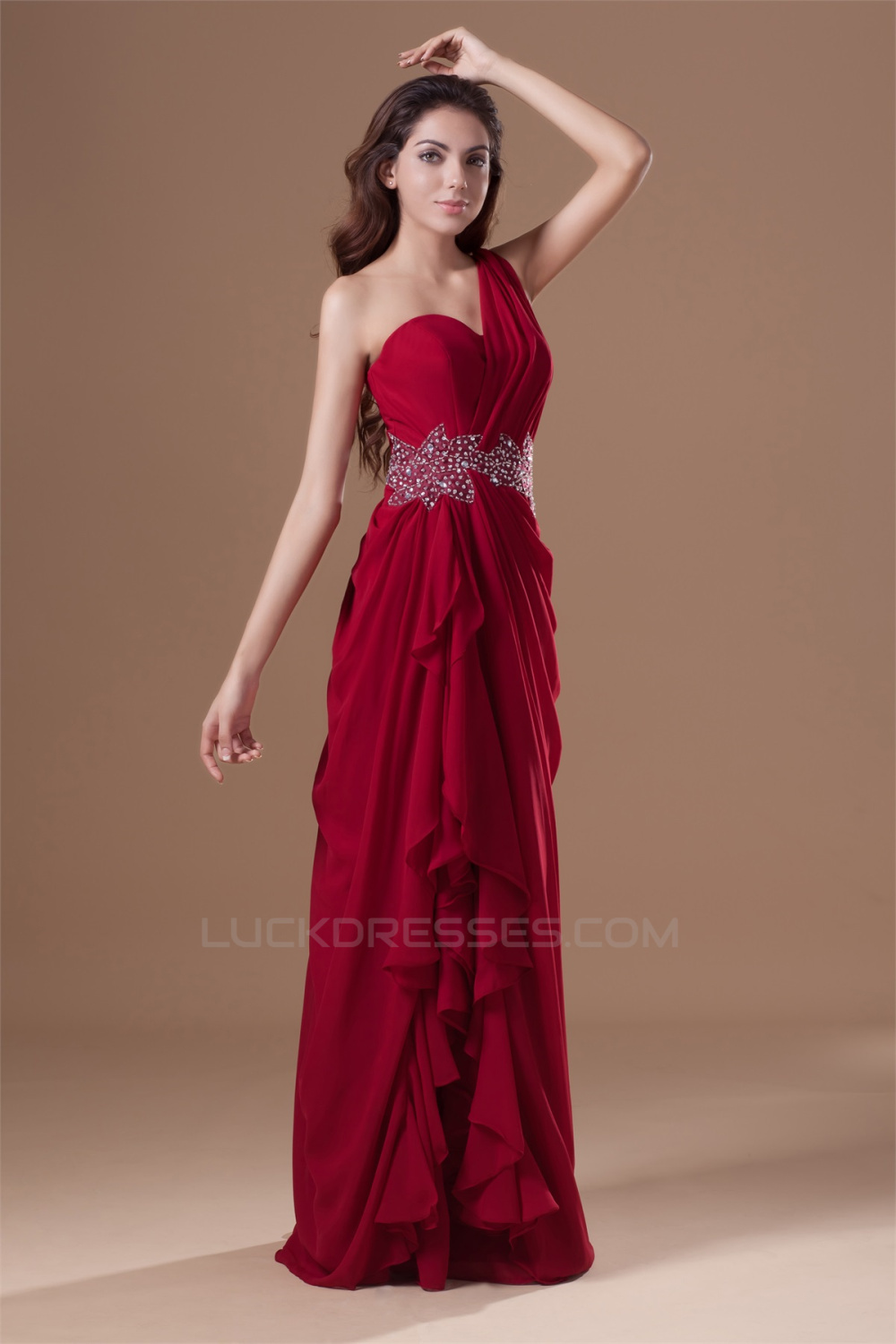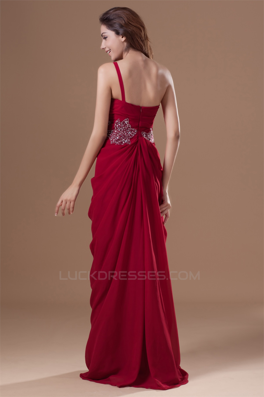 Beading Sheath/Column One-Shoulder Chiffon Silk like Satin Prom/Formal Evening Dresses 02020676