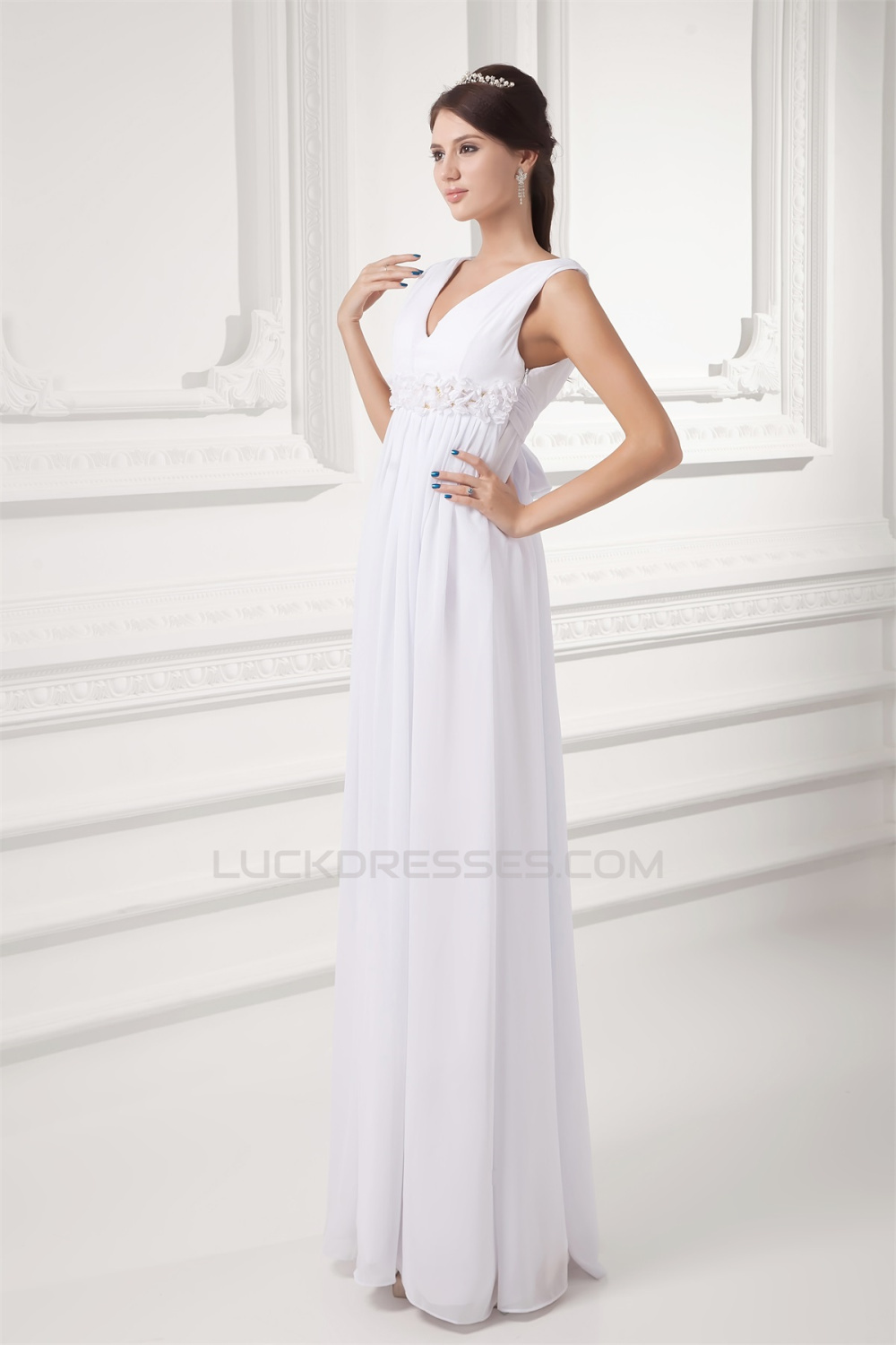 Beading V-Neck Floor-Length Sheath/Column Long Bridesmaid Dresses Maternity Bridesmaid Dresses 02010135