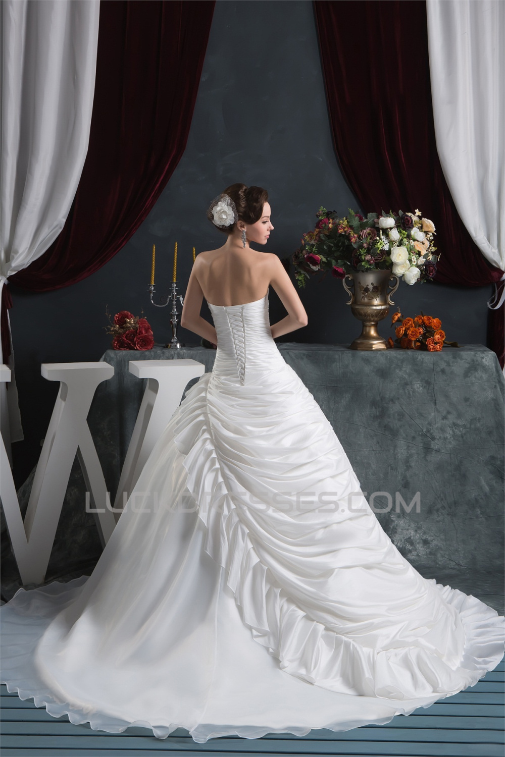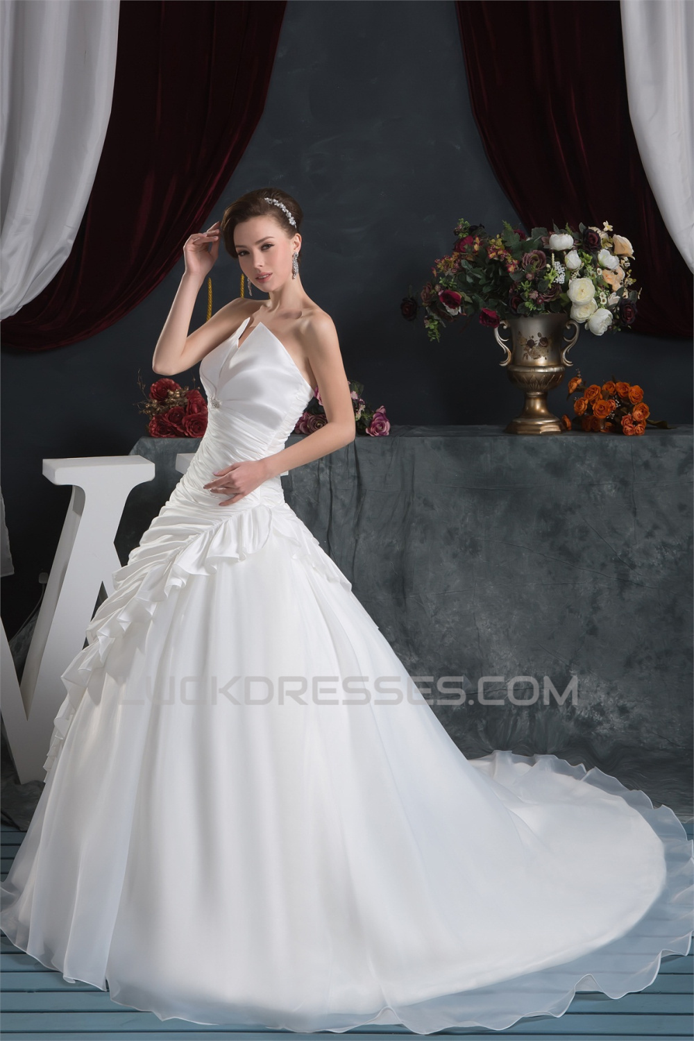 Beautiful A-Line V-Neck Satin Taffeta Short Sleeve Wedding Dresses 2030622