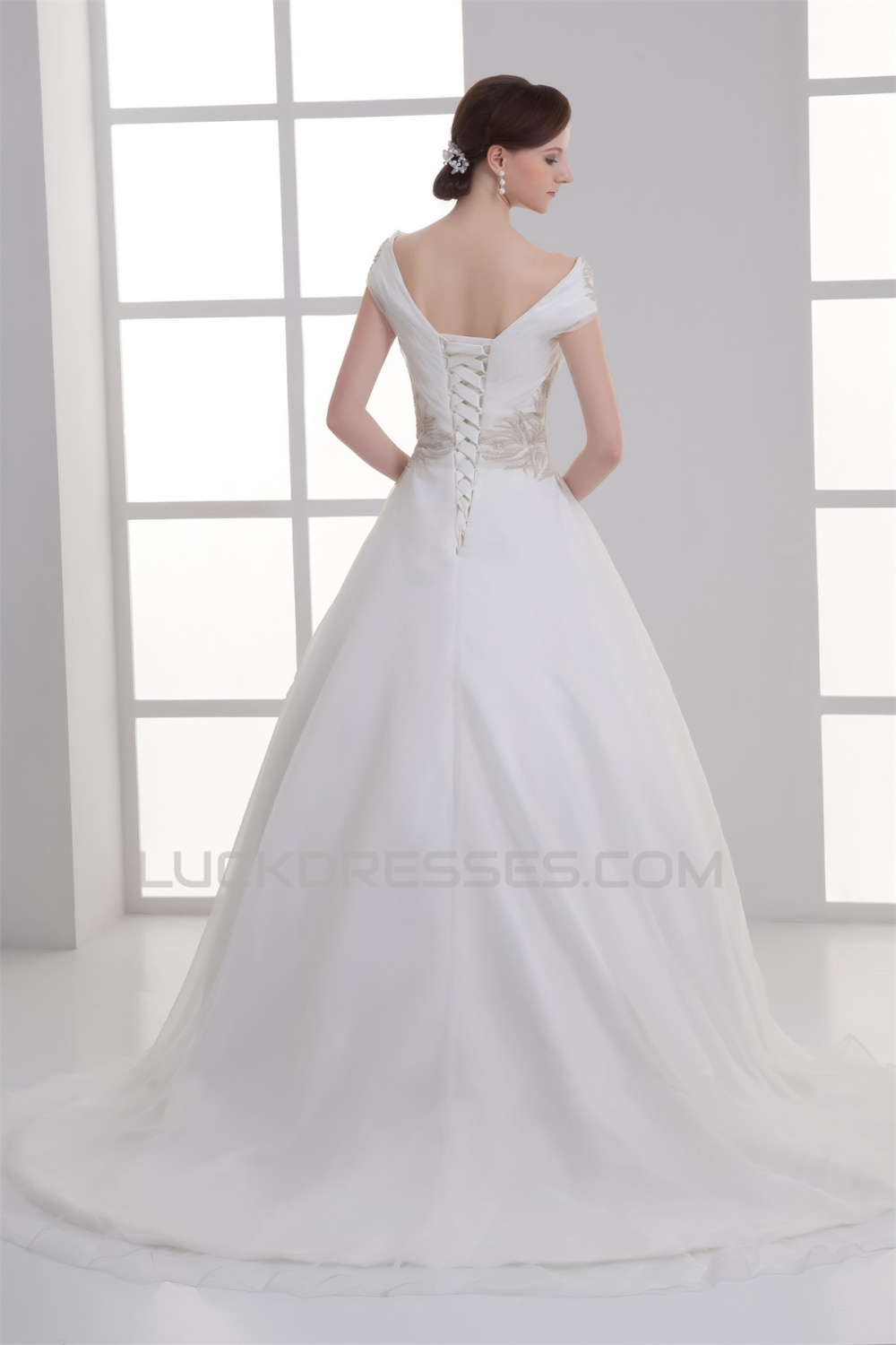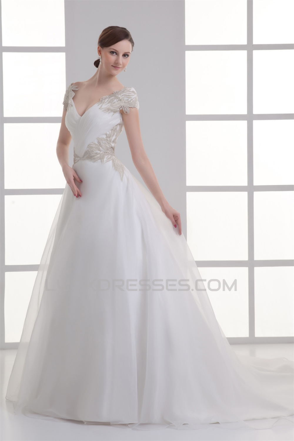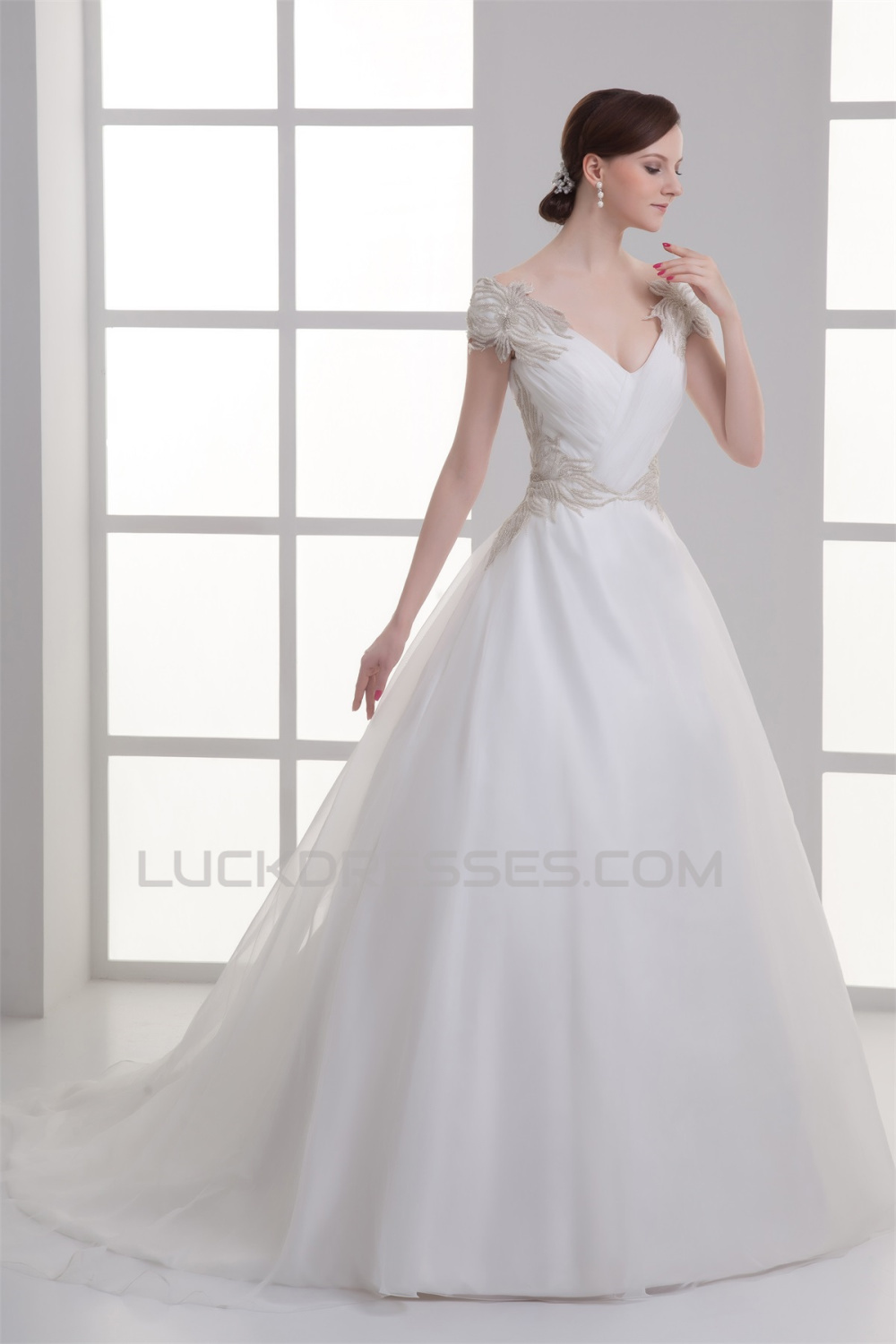 Beautiful Ball Gown V-Neck Sleeveless Satin Organza Beaded Wedding Dresses 2031130