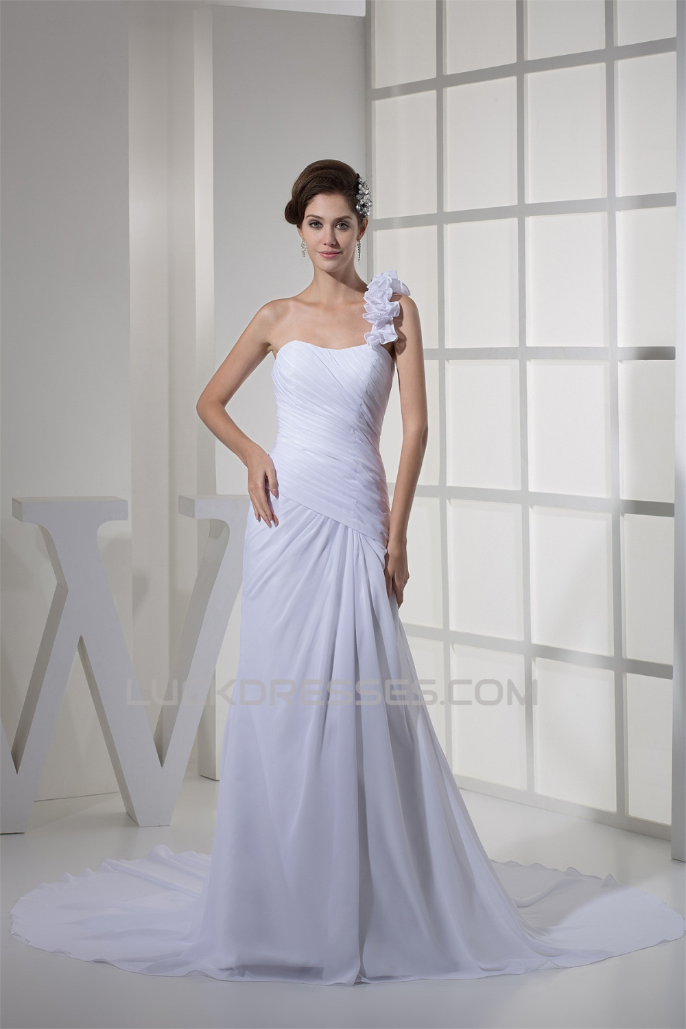 -50% Beautiful Sheath/Column Chiffon One-Shoulder Sleeveless Wedding Dresses 2030067