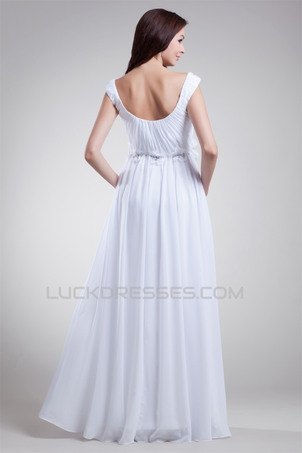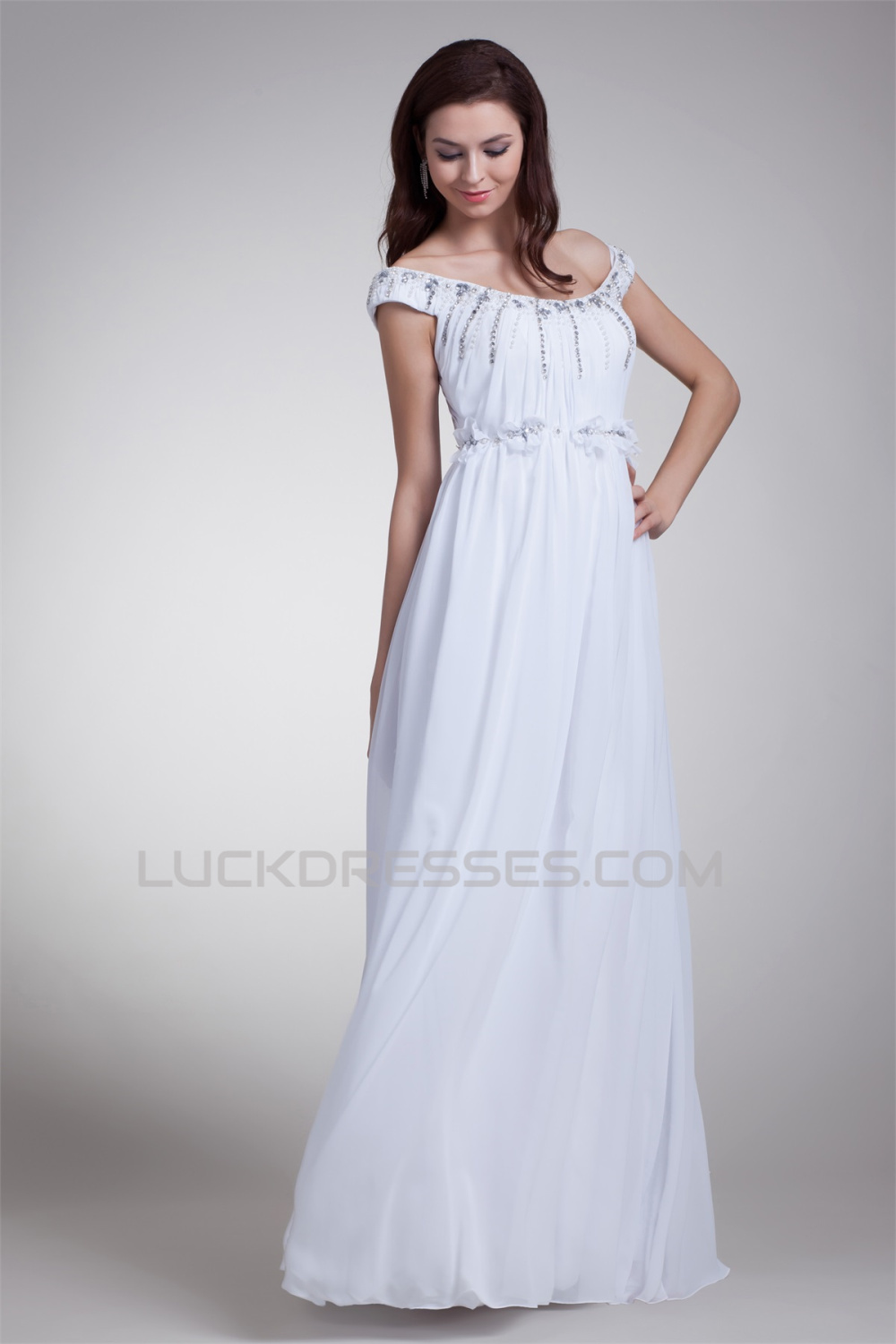 -50% Beautiful Sheath/Column Off-the-Shoulder Chiffon Satin Beaded Wedding Dresses 2031132