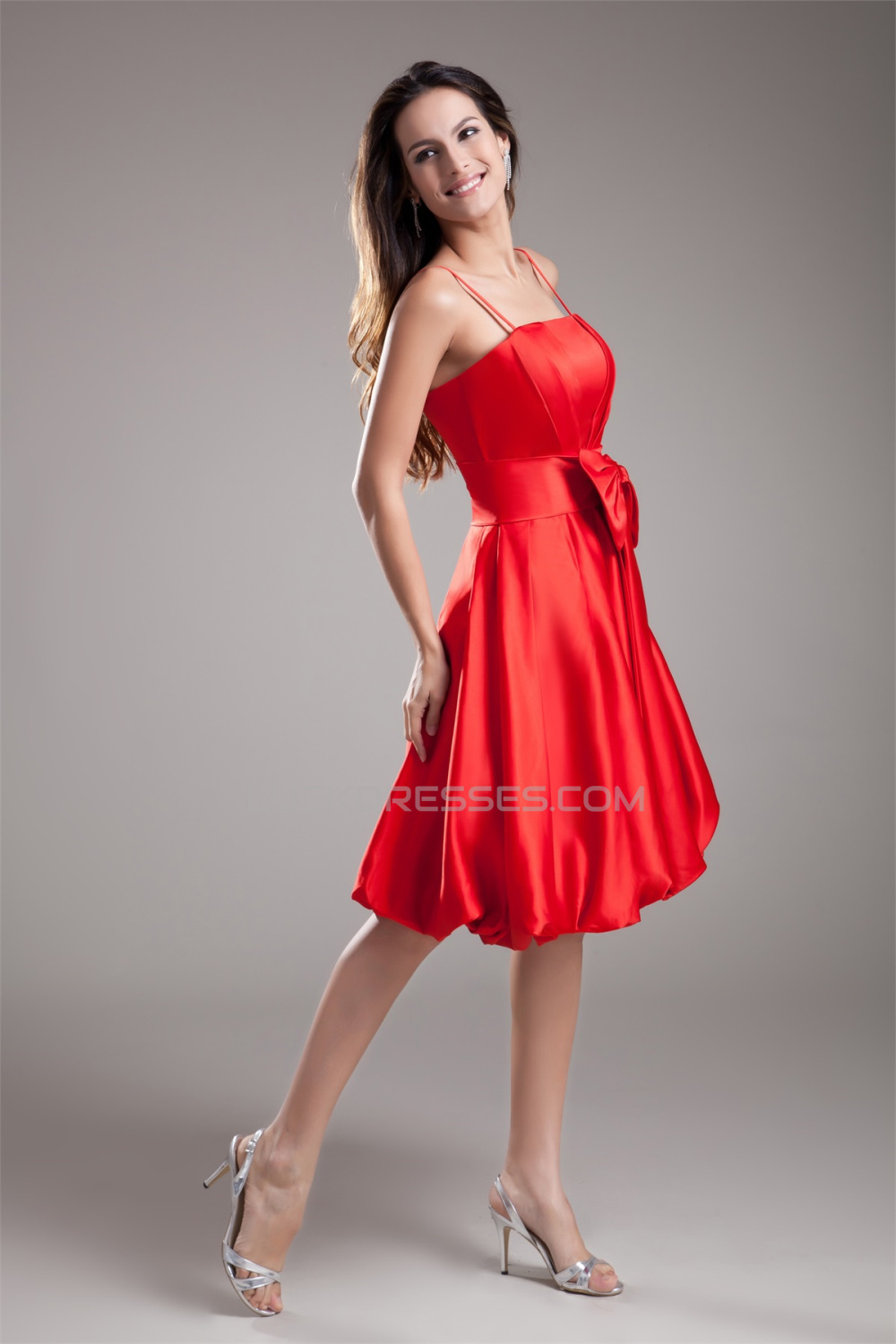 Bows Satin Sleeveless A-Line Spaghetti Straps Short Bridesmaid Dresses 02010464
