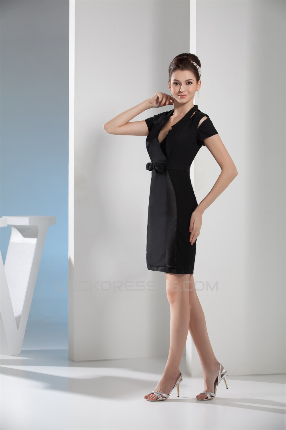 Bows V-Neck Short/Mini Short Sheath/Column Mother of the Bride Dresses 2040022
