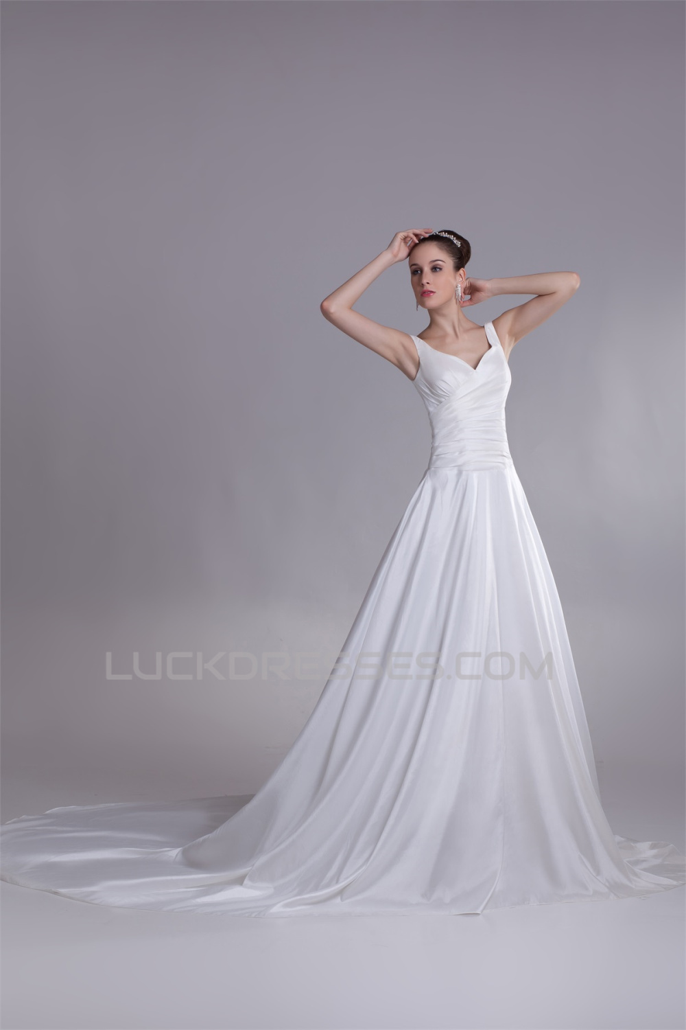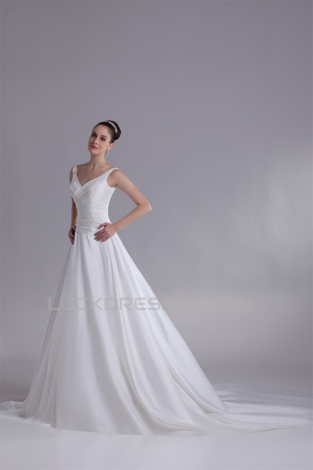 -50% Breathtaking A-Line Taffeta V-Neck Sleeveless Sweet Wedding Dresses 2031140