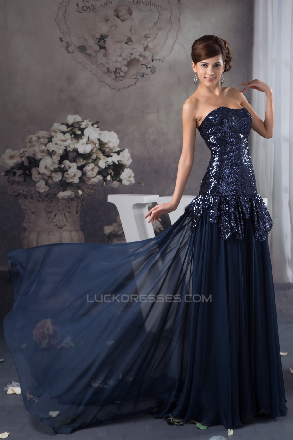 Breathtaking Ruffles Brush Sweep Train Soft Sweetheart Sequins Dresses 02020488