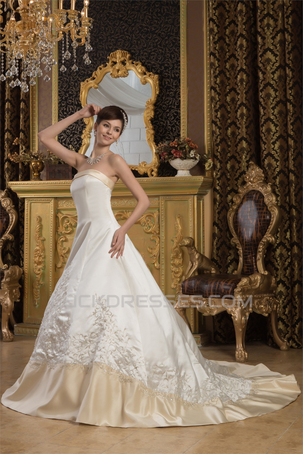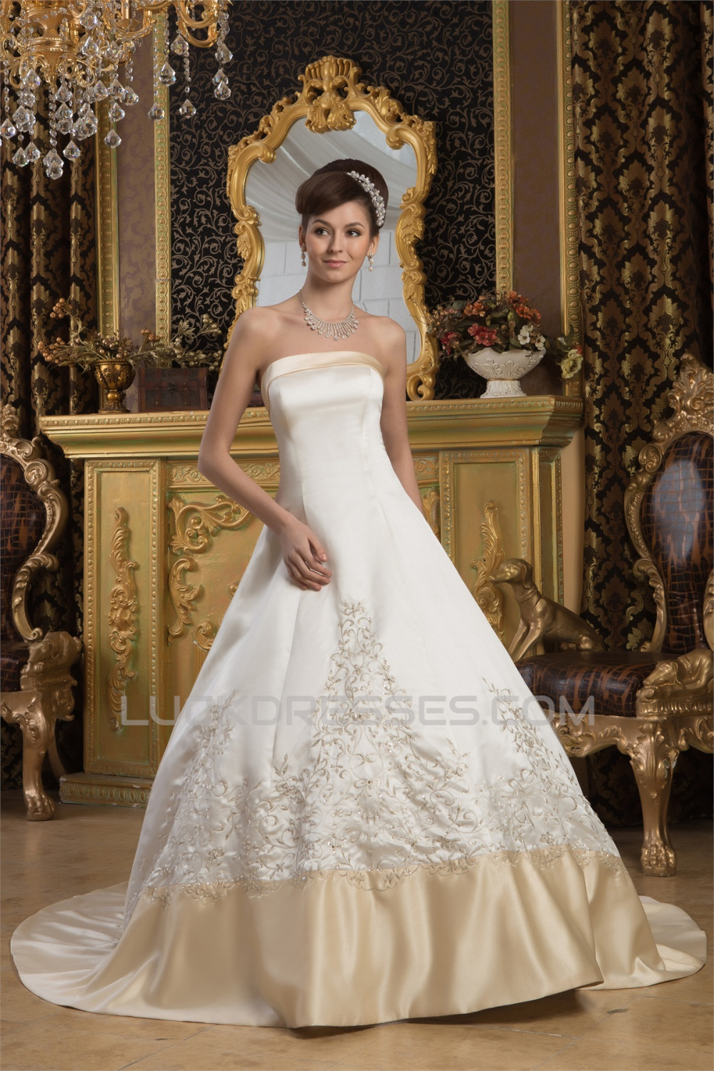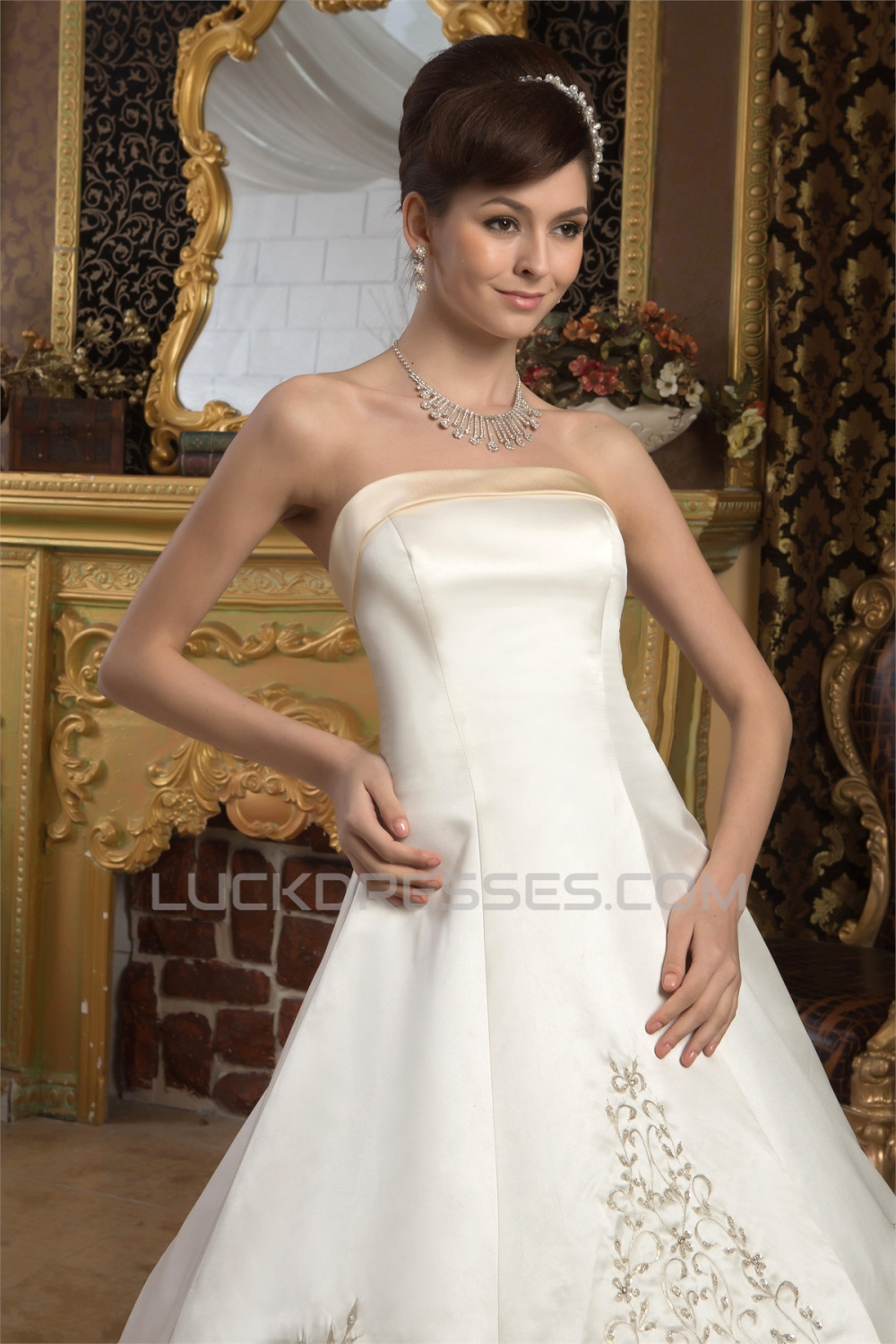 -50% Breathtaking Strapless Satin Sleeveless A-Line Wedding Dresses 2030645