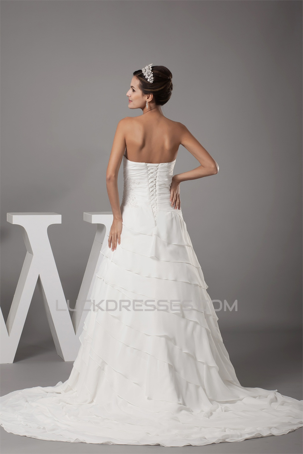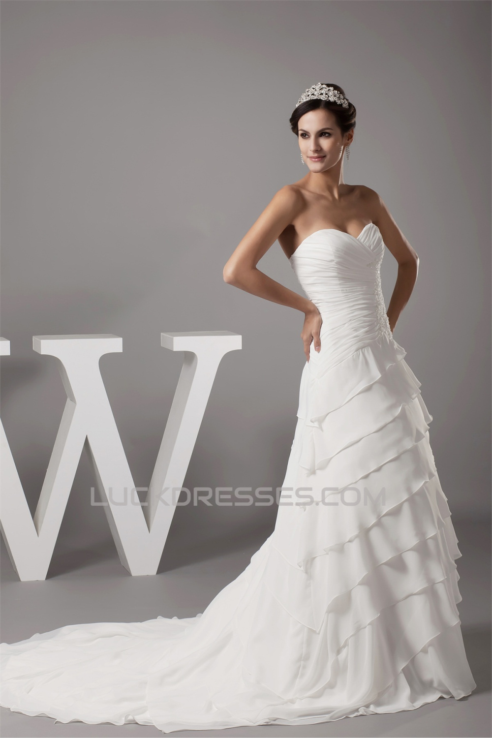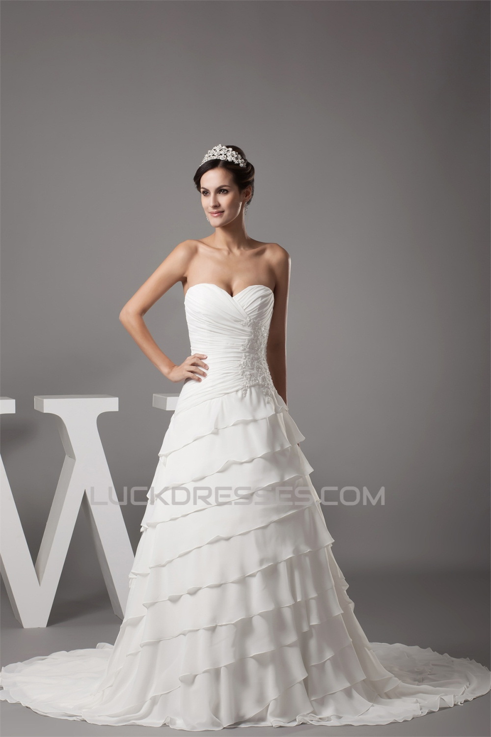 -50% Breathtaking Sweetheart A-Line Chiffon Satin Sweet Wedding Dresses 2030086