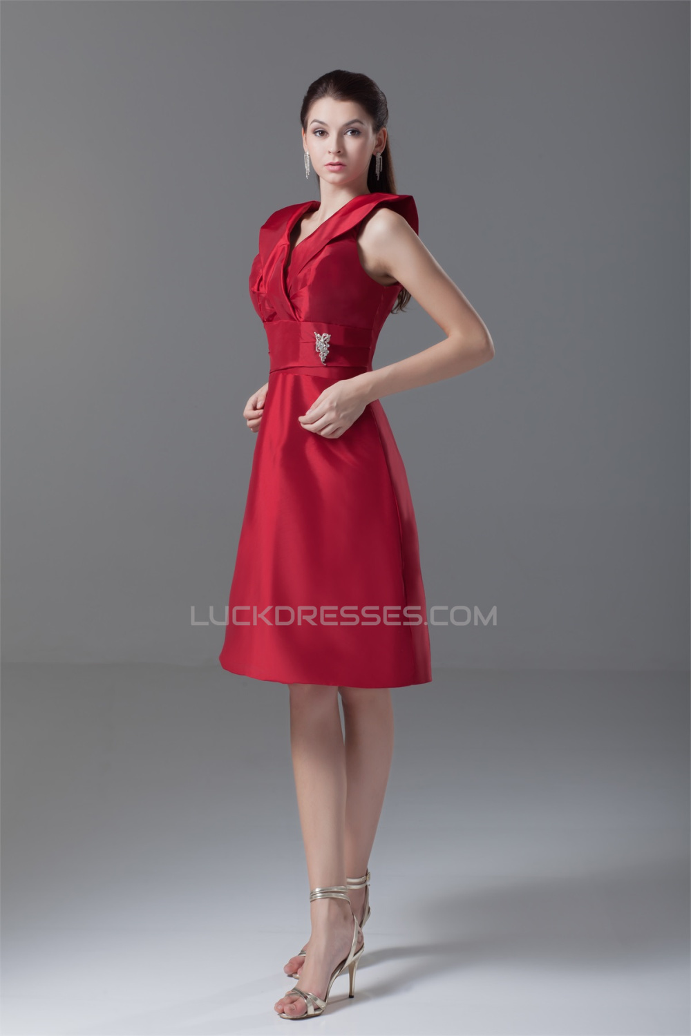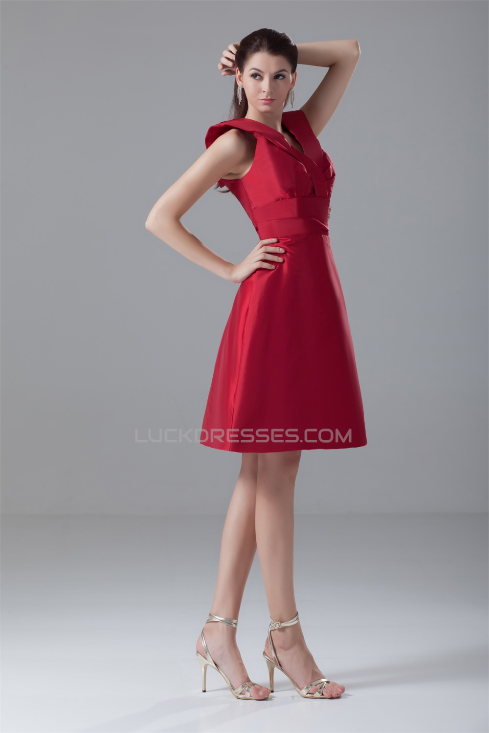 Buckle A-Line V-Neck Short Red Bridesmaid Dresses 02010467
