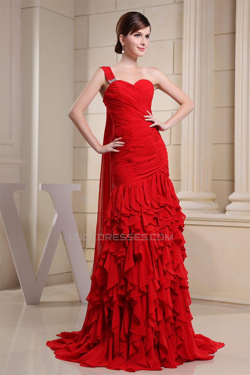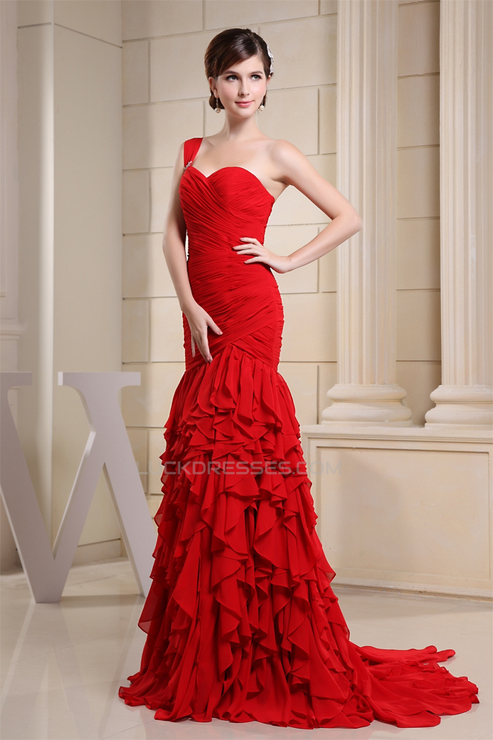 Cascading Ruffles Sweetheart Mermaid/Trumpet Long Red One-Shoulder Prom/Formal Evening Dresses 02020132