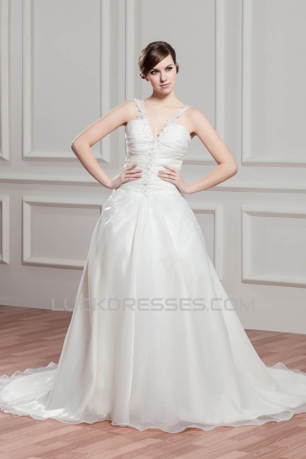 Charming V-Neck Sleeveless Satin Organza A-Line Wedding Dresses 2030653