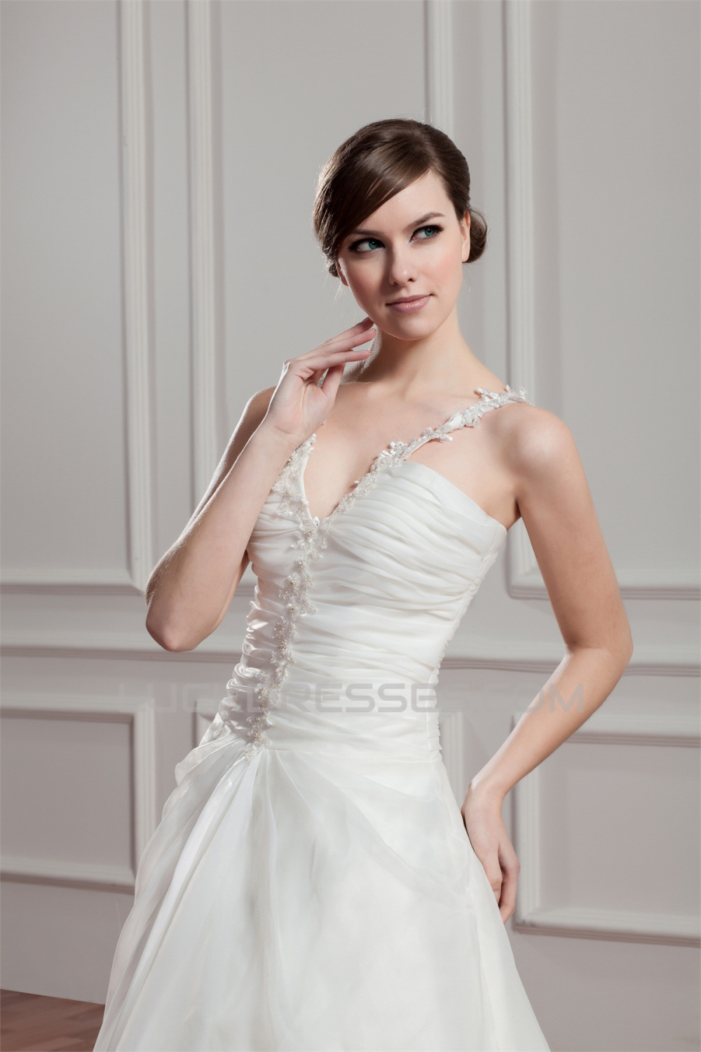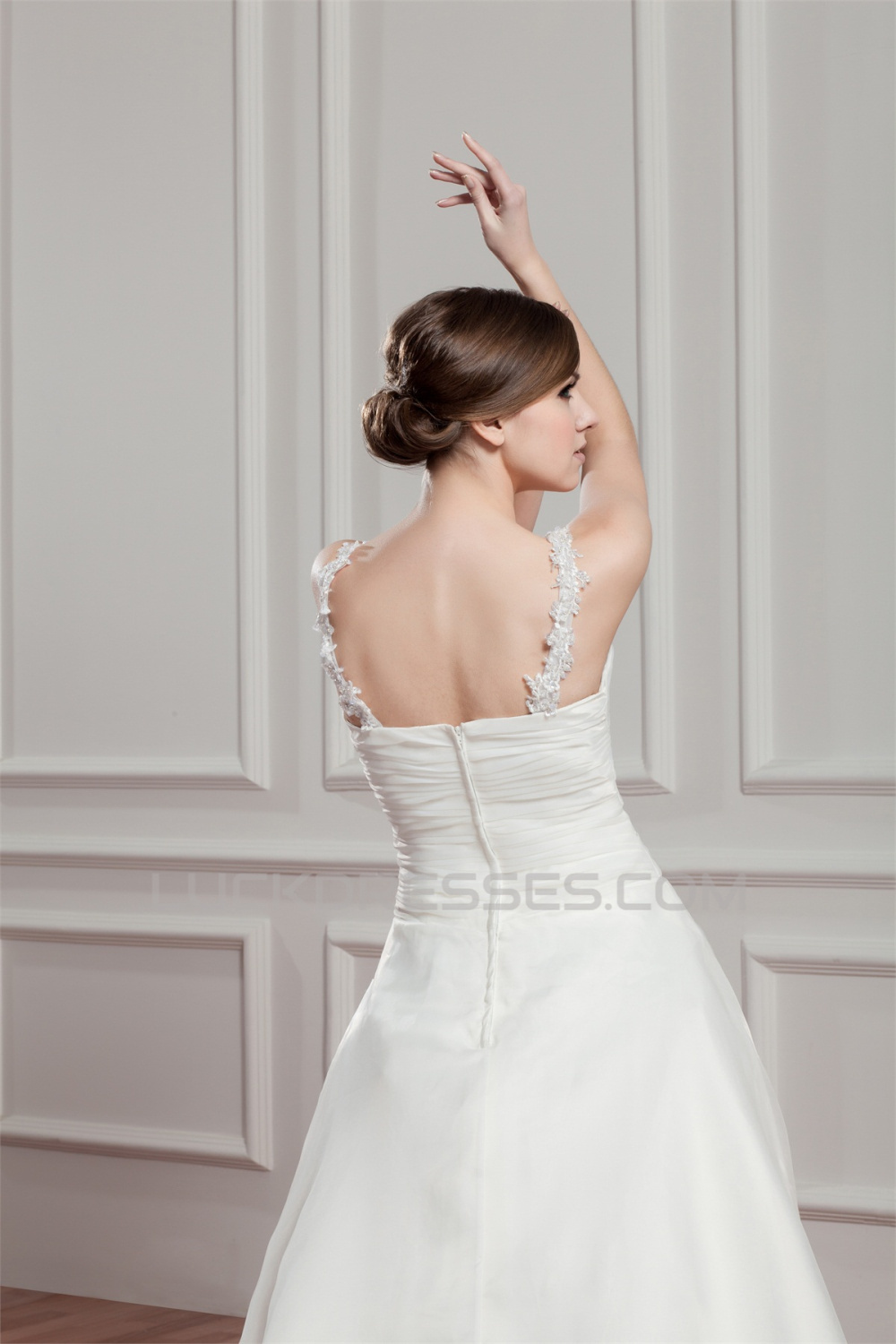 -50% Charming V-Neck Sleeveless Satin Organza A-Line Wedding Dresses 2030653