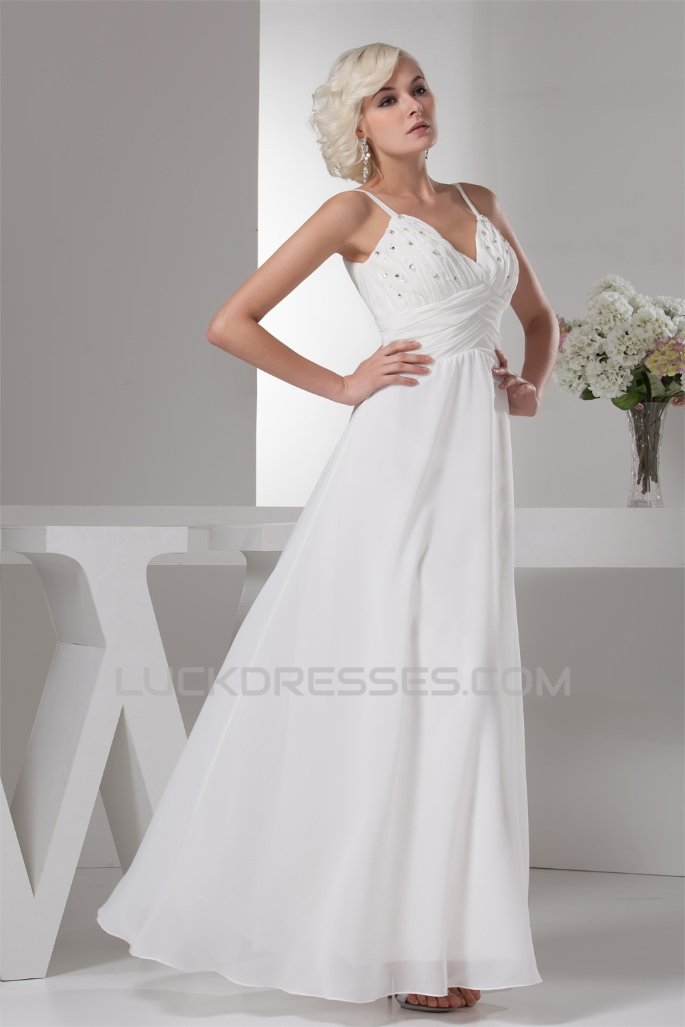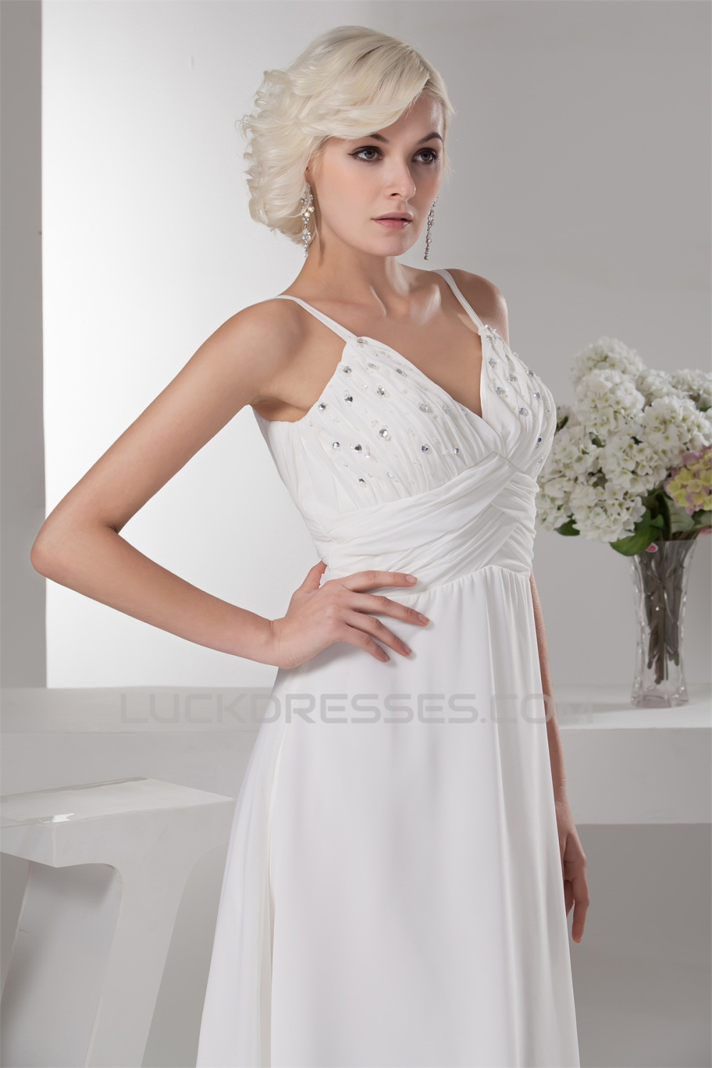 Chiffon Silk like Satin A-Line Sleeveless Beaded Wedding Dresses 2030656