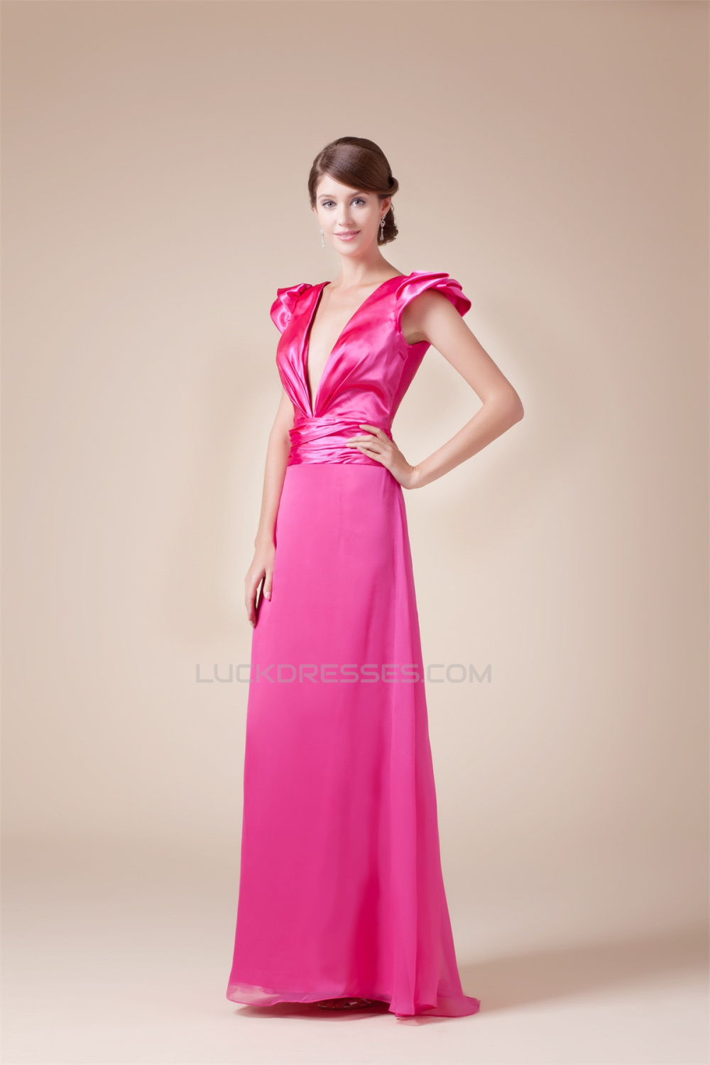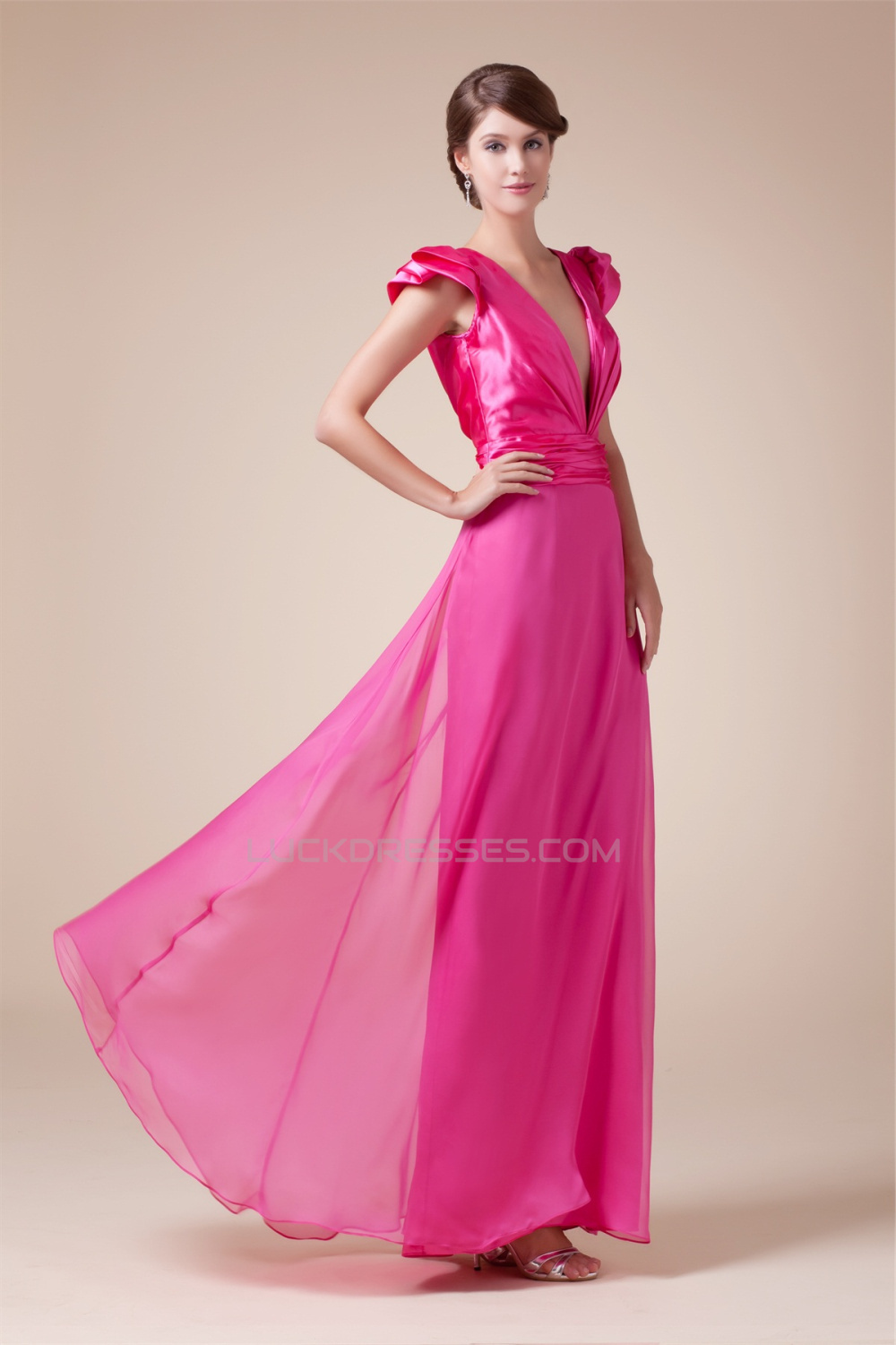 -60% Chiffon Silk like Satin Floor-Length V-Neck Prom/Formal Evening Bridesmaid Dresses 02020148