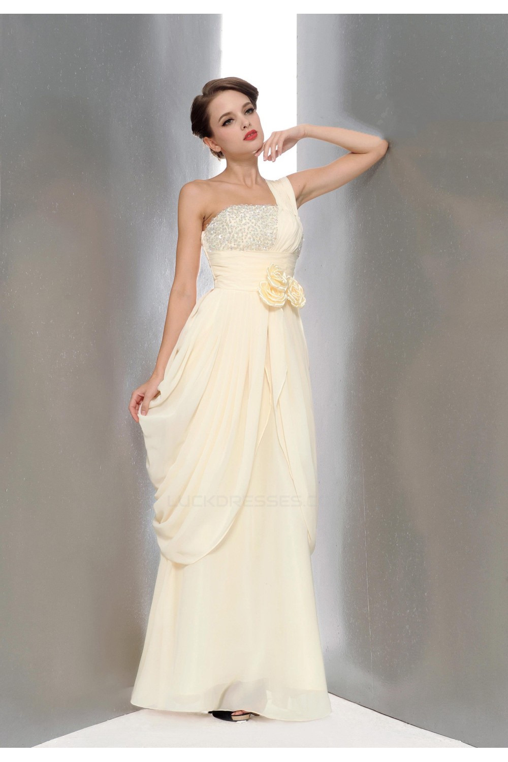 Column One-Shoulder Beaded Long Chiffon Prom Evening Formal Party Dresses ED010655