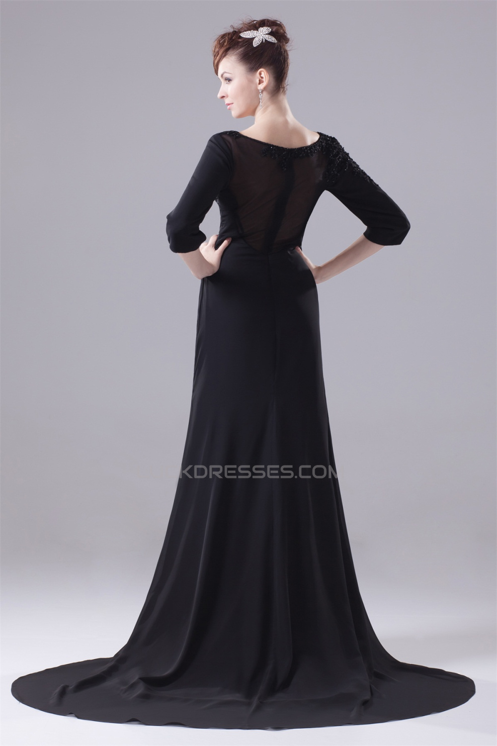 Court Train Sheath/Column Chiffon Long Black Prom/Formal Evening Dresses 02020163