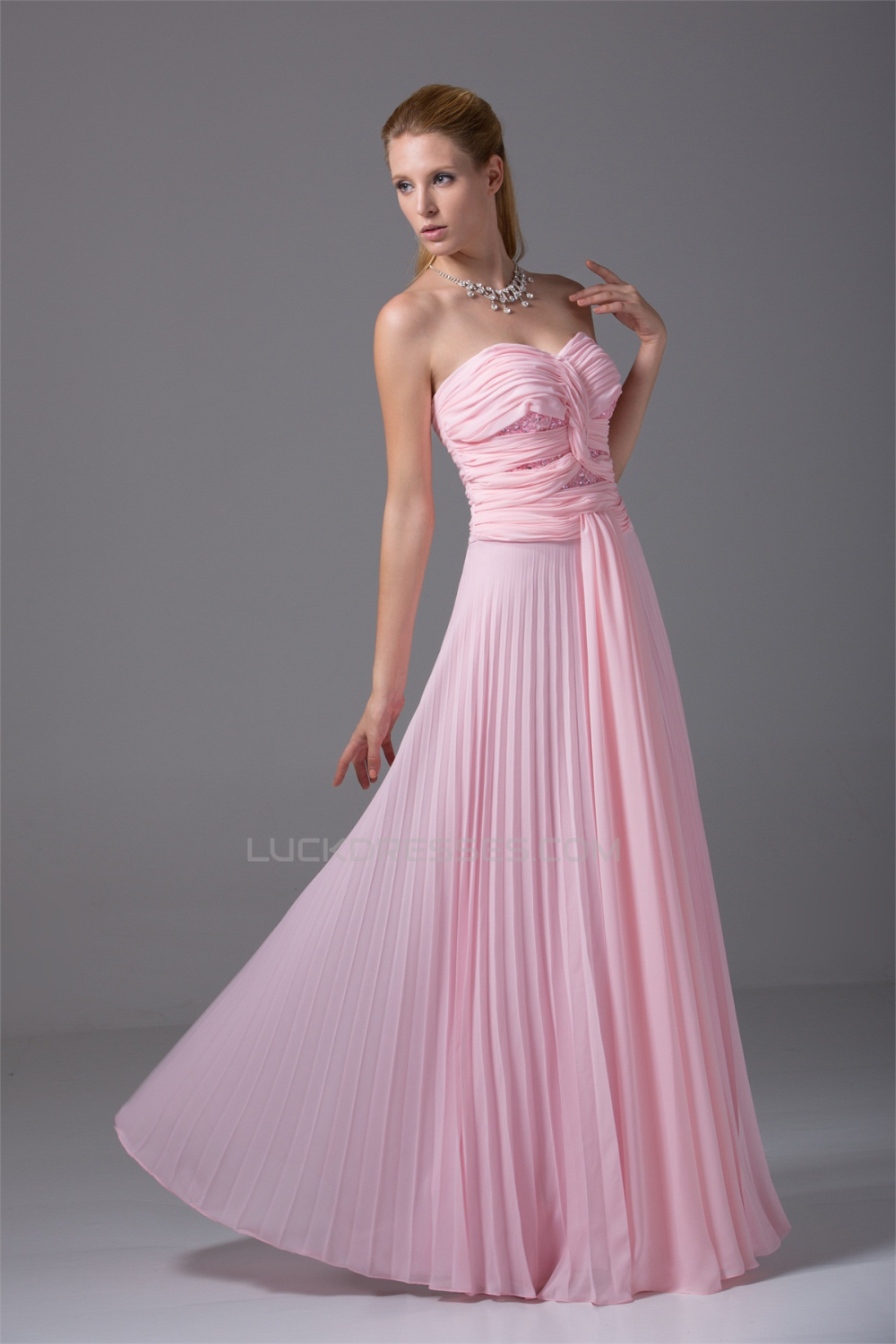 Criss Cross A-Line Sweetheart Floor-Length Long Pink Prom Evening Bridesmaid Dresses 02020167