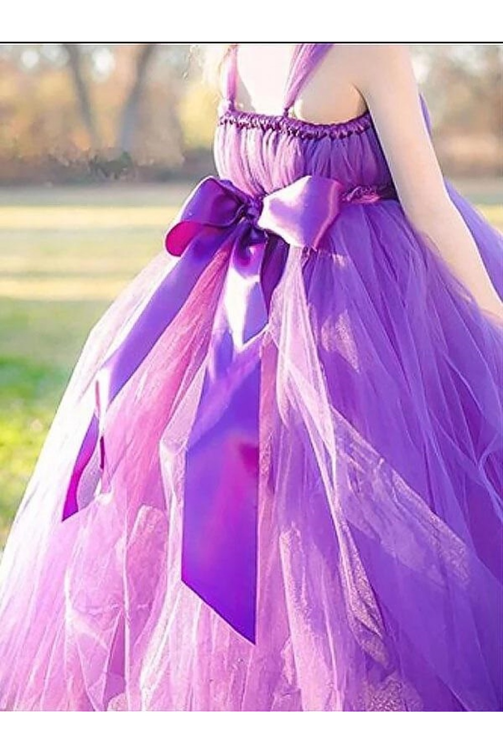 -59% Cute Floor Length Purple Tulle Flower Girl Dresses 905030