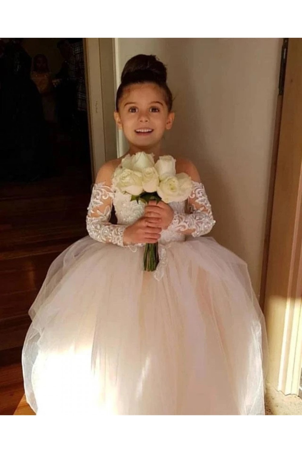 Cute Lace and Tulle Flower Girl Dresses with Sleeves 905027