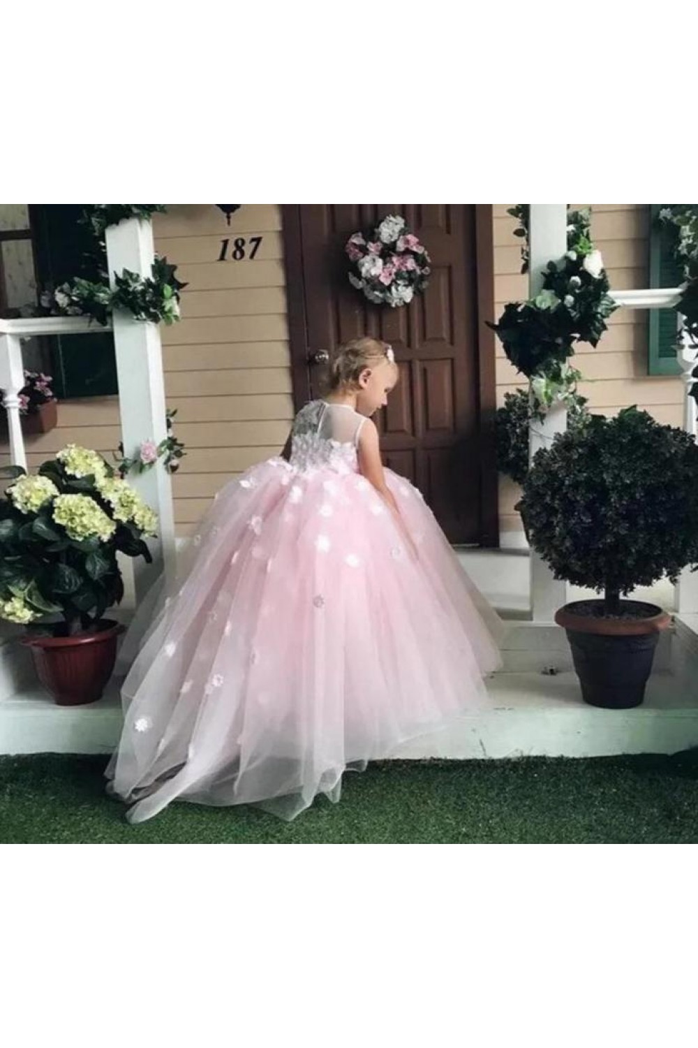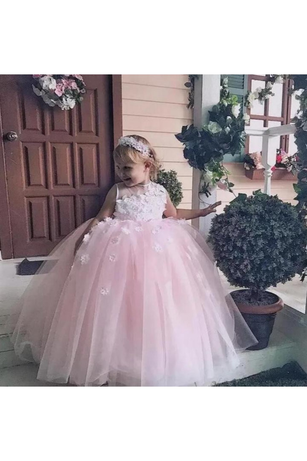 Cute Lace and Tulle Pink Flower Girl Dresses 905092