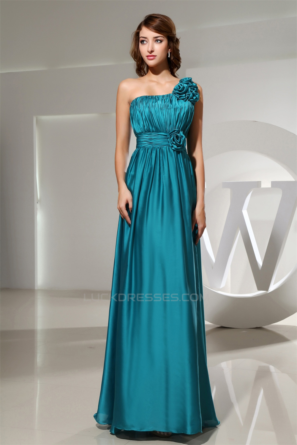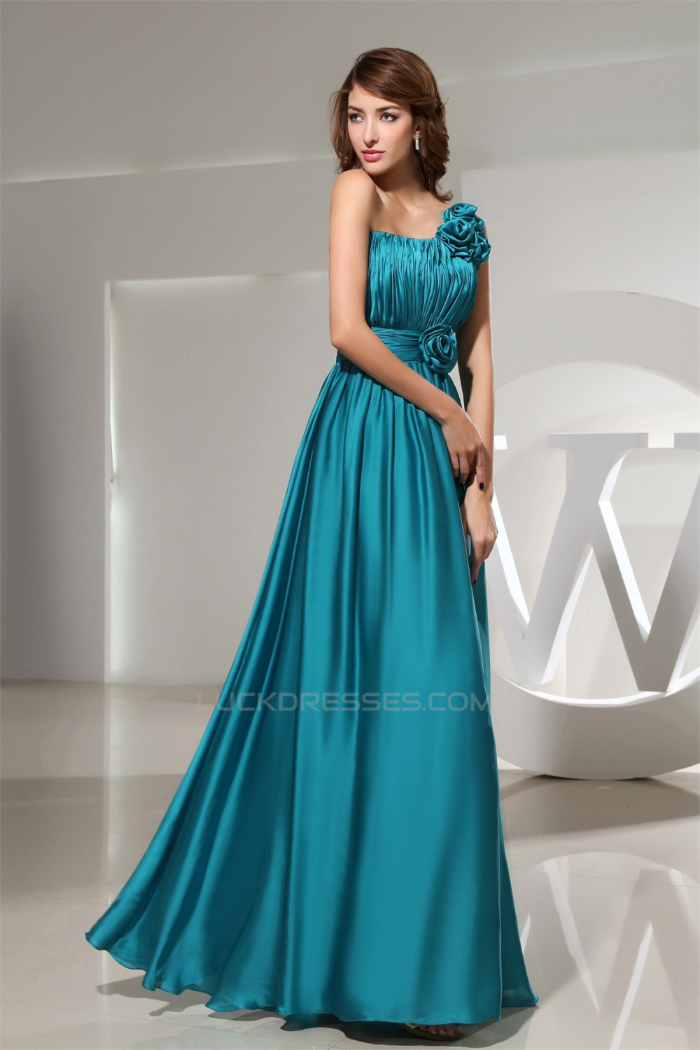 Elastic Woven Satin Floor-Length One-Shoulder Best Bridesmaid Dresses 02010023