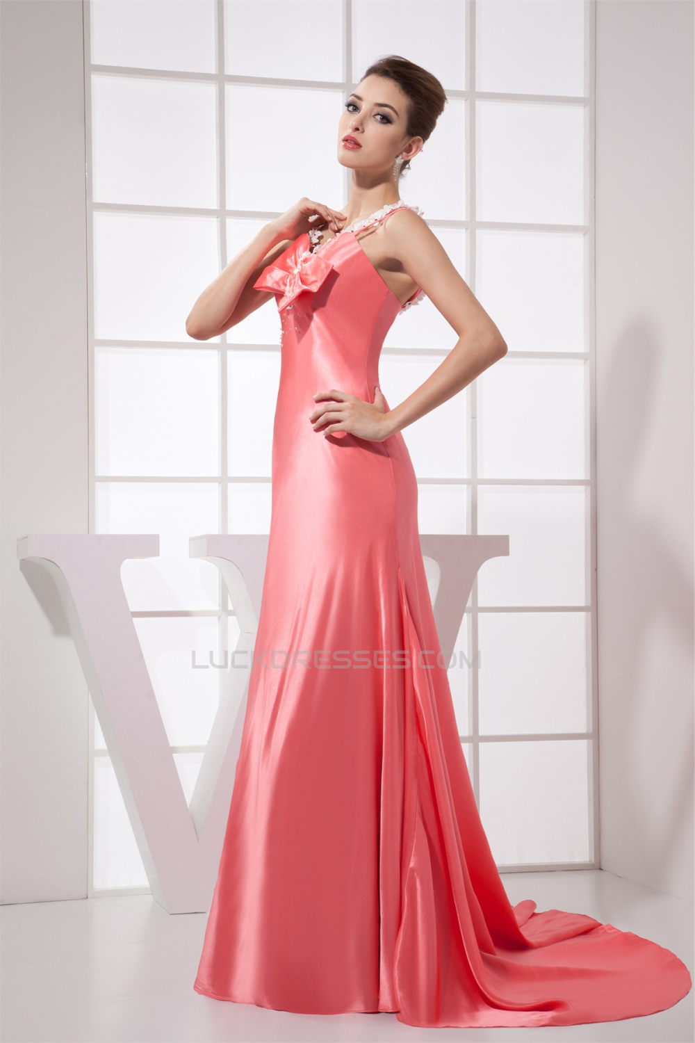-60% Elastic Woven Satin Ruched Sleeveless Brush Sweep Train Prom/Formal Evening Dresses 02020169