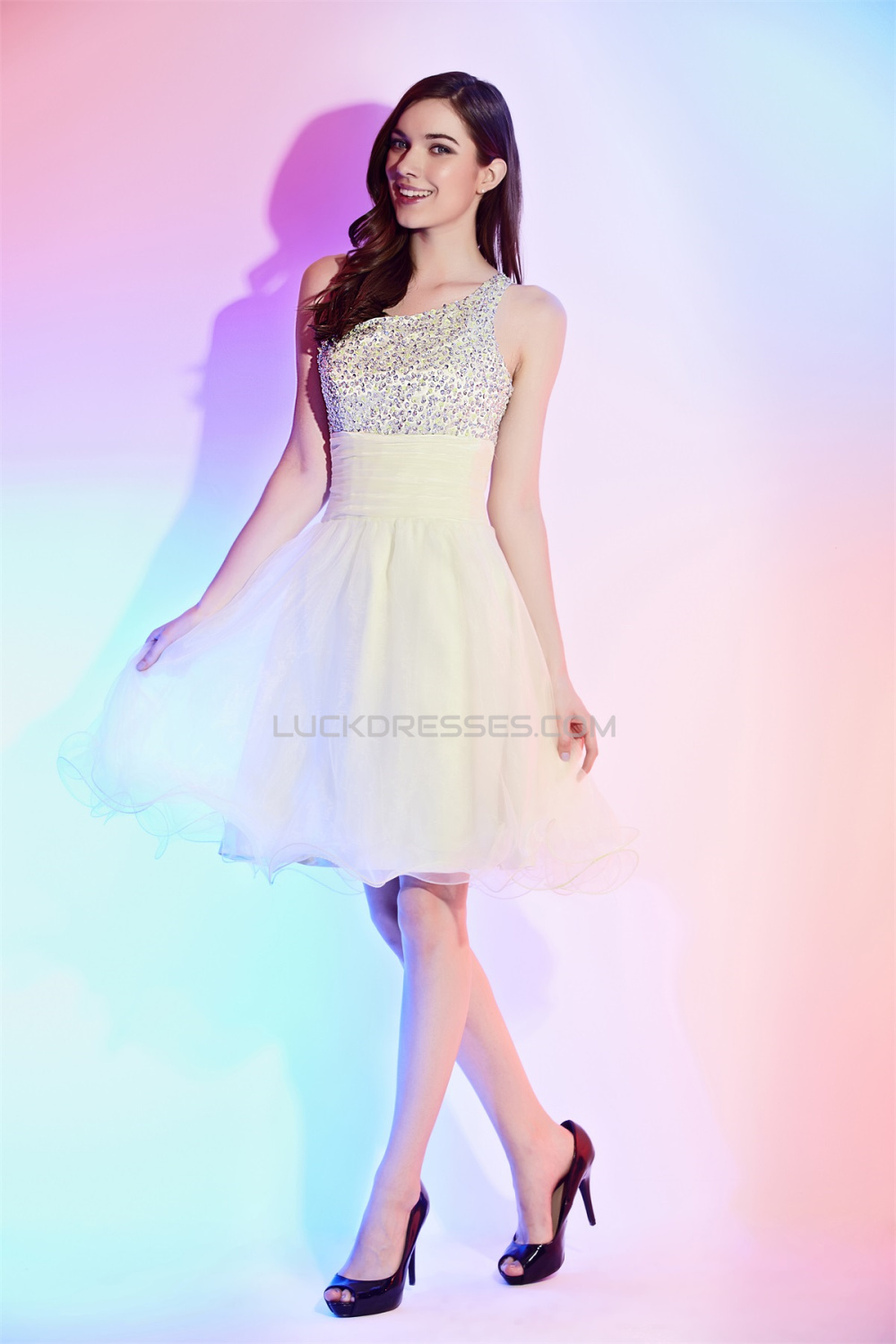 Elegant A-Line Beaded One-Shoulder Prom/Formal Evening Cocktail Homecoming Dresses 02021550