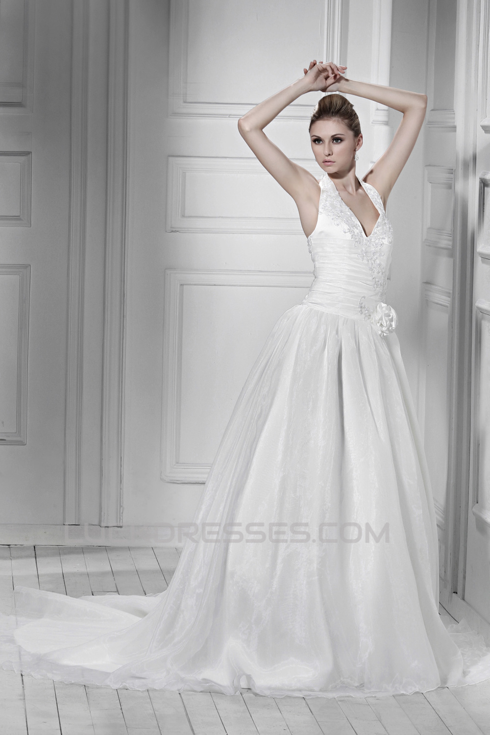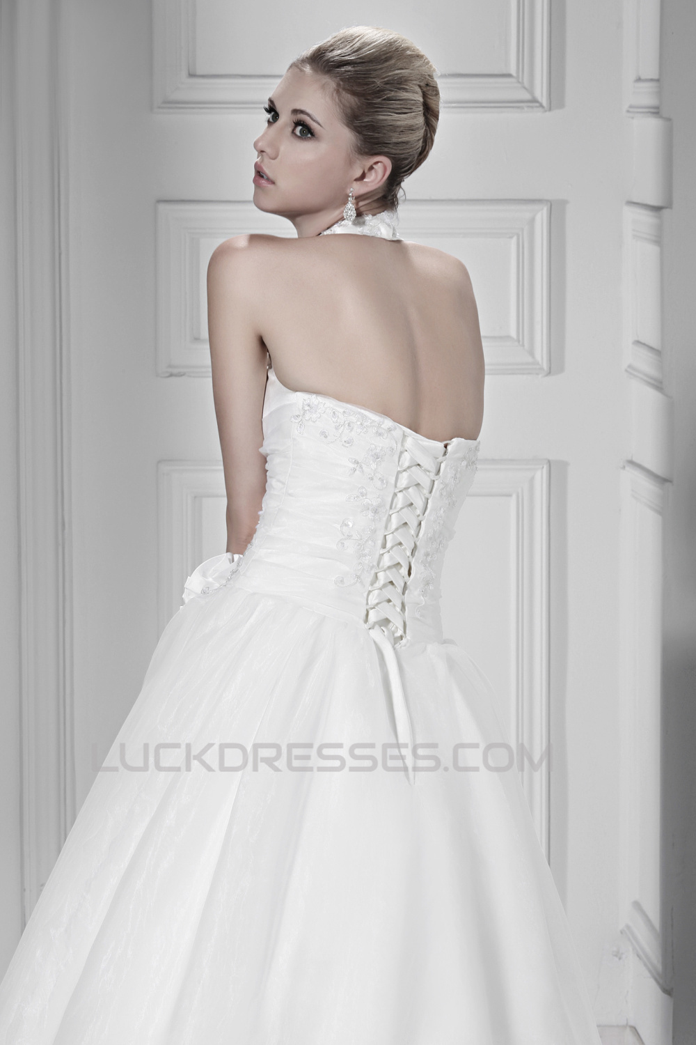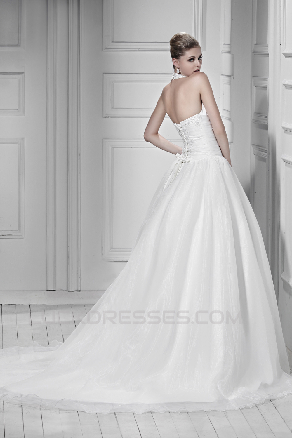 -50% Elegant A-Line Halter Court Train Wedding Dresses 2031438
