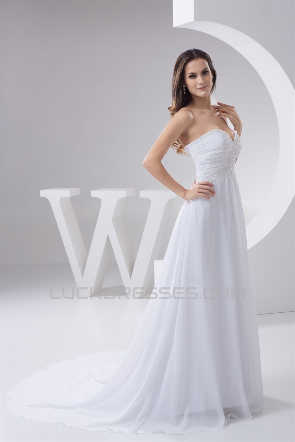 Elegant A-Line Sleeveless Chiffon Sweetheart Best Wedding Dresses 2030663