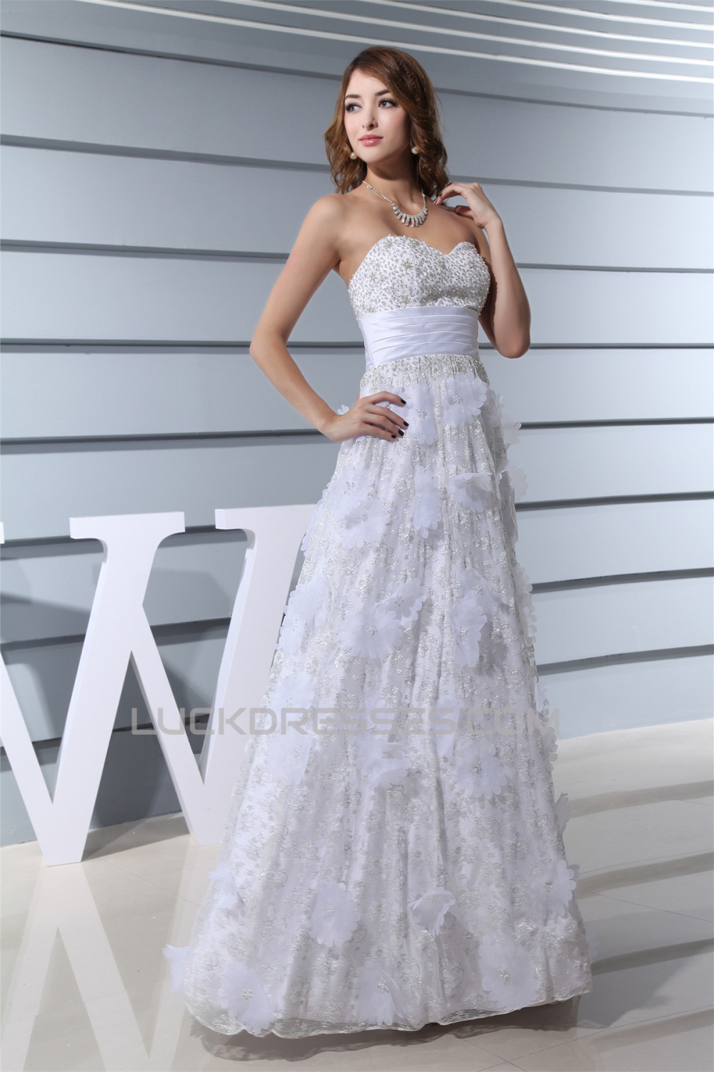 -50% Elegant A-Line Sleeveless Satin Lace Sweetheart Wedding Dresses 2030126