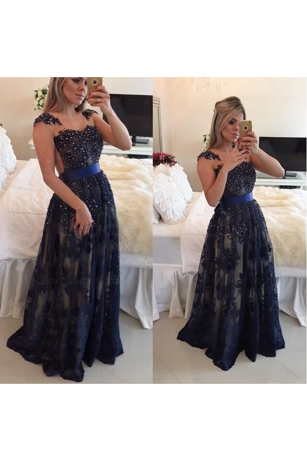 Elegant Beaded Lace Appliques Long Prom Dresses Evening Gowns 3020217