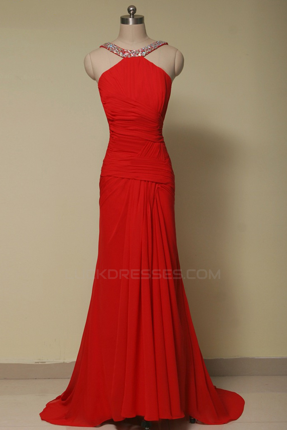 Elegant Beaded Long Red Chiffon Prom Evening Formal Dresses ED011644