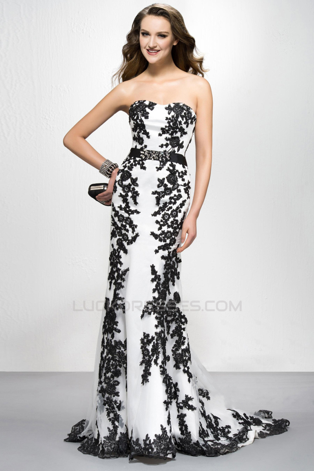 Elegant Black White Appliques Long Prom Evening Formal Party Dresses ED010576