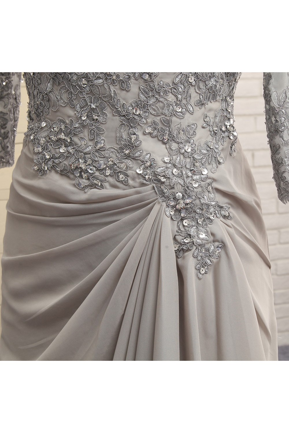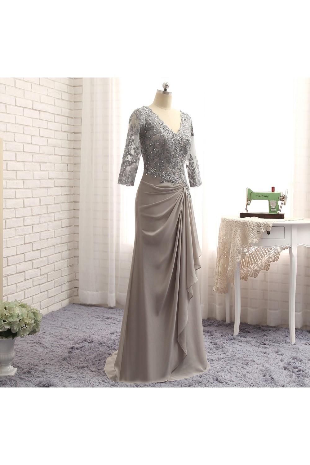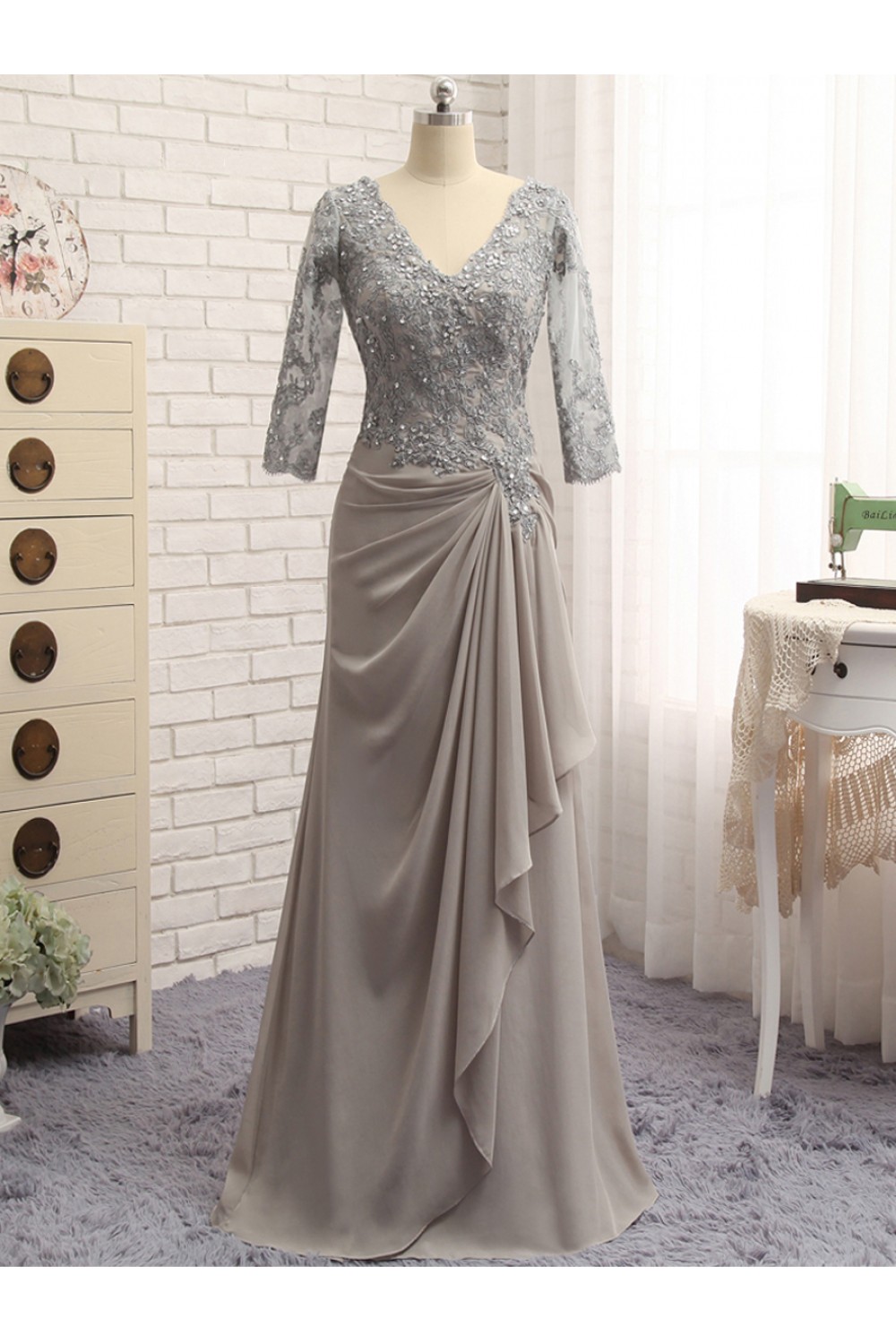 Elegant Chiffon Beaded V-Neck Long Mother of The Bride Dresses 602100